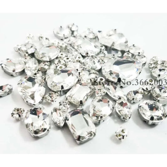 Lot de 68 strass brillants en cristal blanc, tailles variées, à dos plat, à coudre, accessoires de couture pour vêtements et loisirs créatifs
