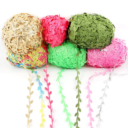 Feuilles artificielles en soie, 5 mètres, vertes et dorées, pour décoration de boîte de mariage, feuillage, scrapbooking, couronne artisanale