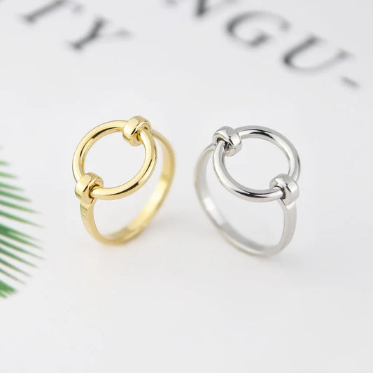 Bague en forme de cercle de forme Pure, Design Simple, en acier inoxydable, couleur or
