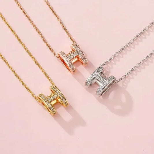 Collier pendentif lettre H, avec chaîne de clavicule incrustée, chaîne de clavicule design de niche, collier de vêtements à la mode