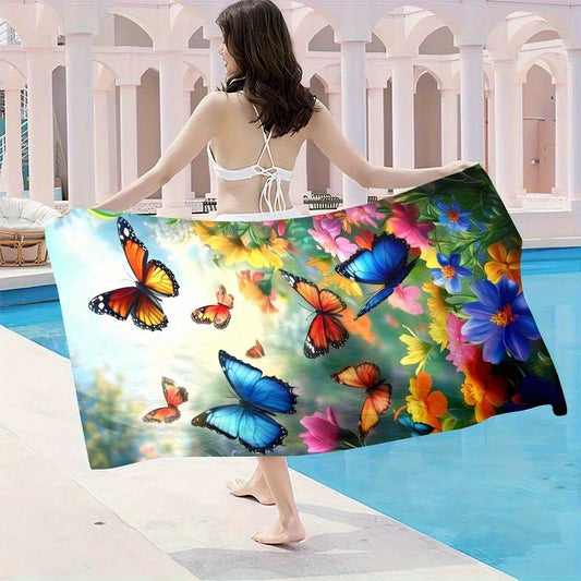 Serviette de plage motif papillon et fleur, protection solaire et coupe-vent, adaptée à la plage, piscine, camping, voyage, couverture de plage