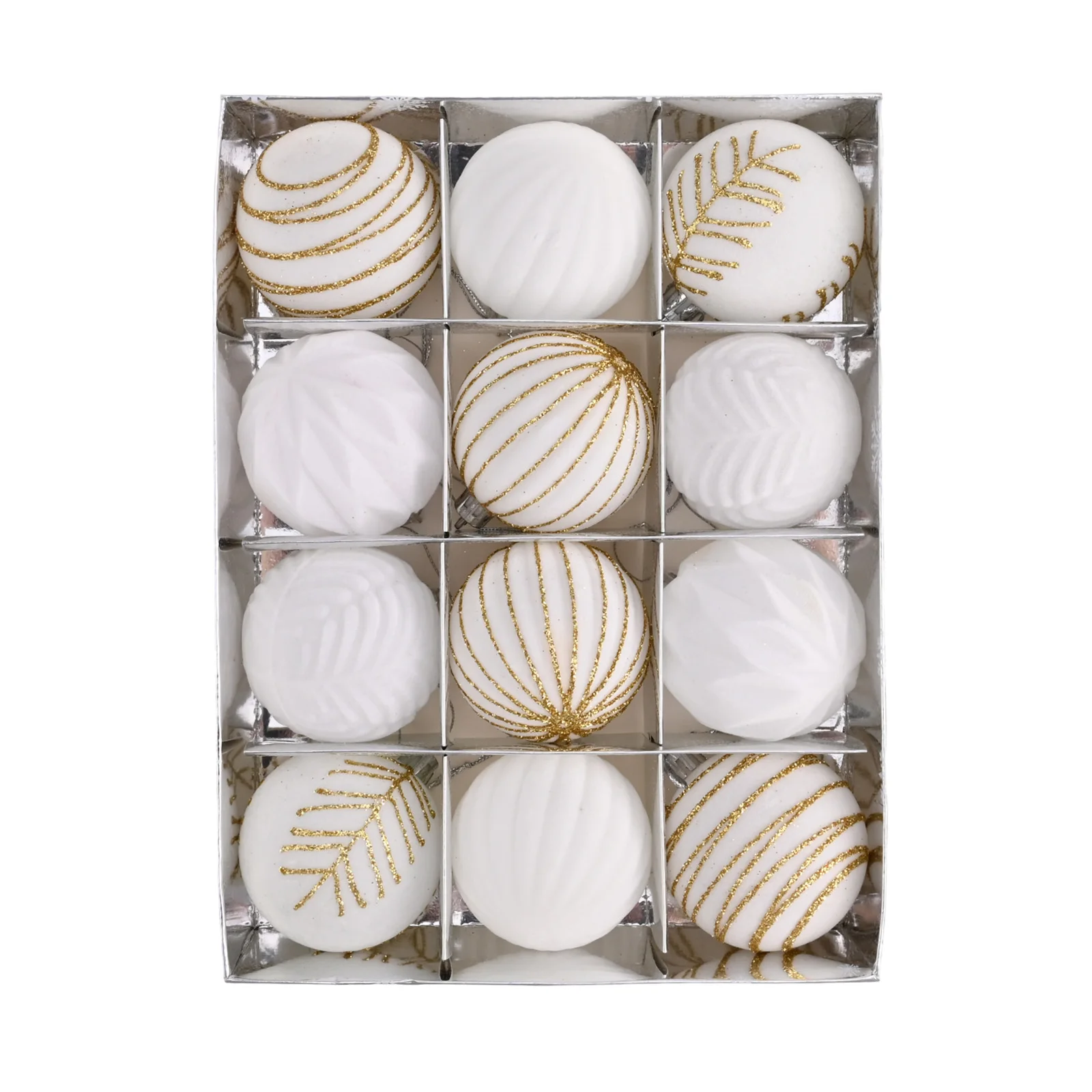 Ensemble de 12 boules de Noël de 6 cm, collection complète pour orner votre sapin avec style et harmonie. Composées de matériaux sûrs sans substances chimiques préoccupantes, ces ornements conviennent à tous les types de célébrations : Noël, mariages, réveillons du Nouvel An et événements festifs. Leur format compact et leur design intemporel en font des accessoires indispensables pour créer une décoration intérieure chaleureuse et mémorable.