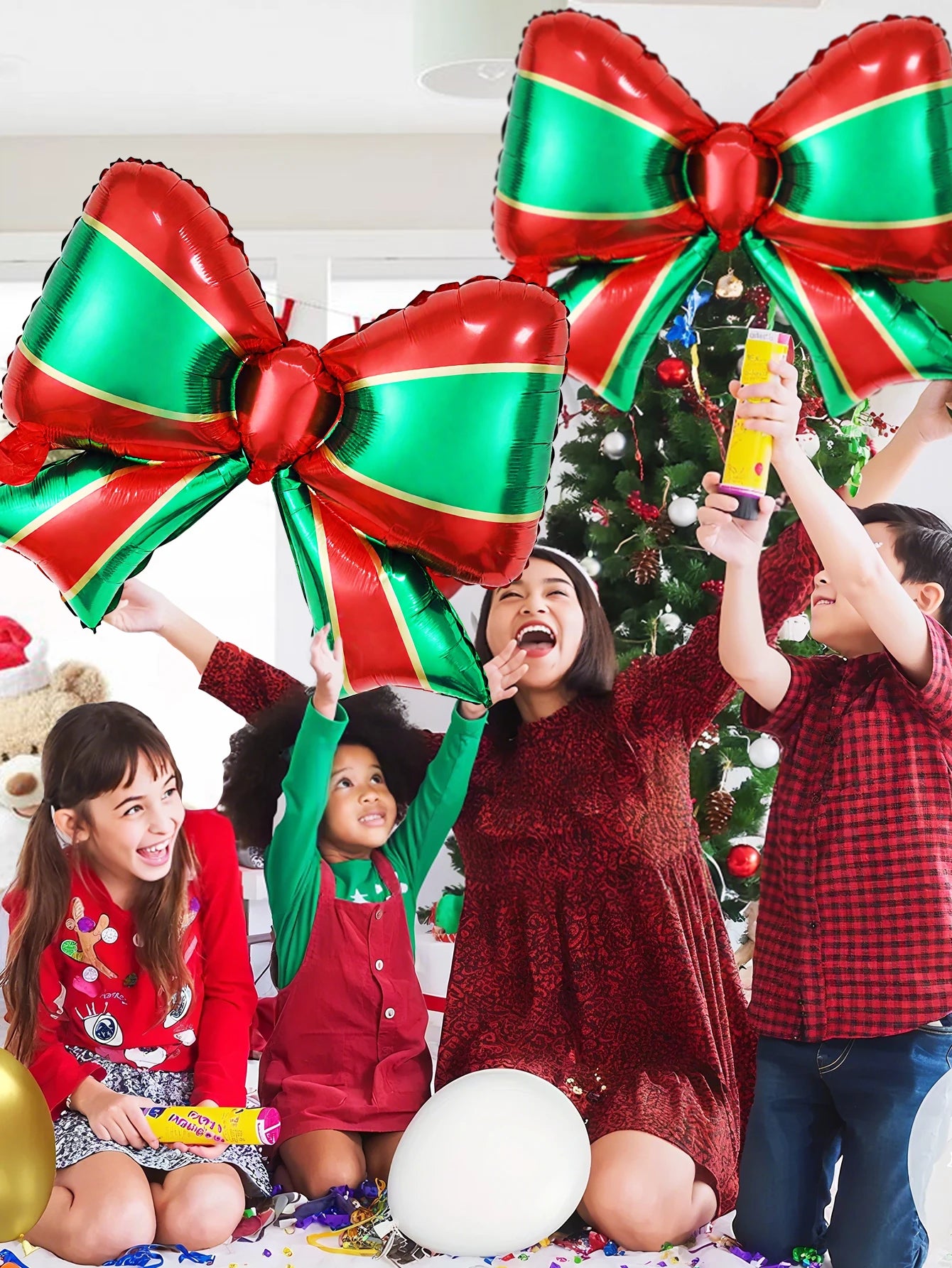 Duo de ballons festifs en feuille d'aluminium aux motifs de nœuds de Noël, conçus pour sublimer vos célébrations hivernales. Ces accessoires de forme arquée, fabriqués en Chine, conviennent parfaitement aux événements majeurs, anniversaires et festivités du Nouvel An. Garantis sans substances chimiques préoccupantes, ils offrent une solution de décoration sécurisée et élégante. Idéaux pour créer une ambiance festive et raffinée, ces ballons apportent une touche sophistiquée à votre décoration intérieure ou extérieure.