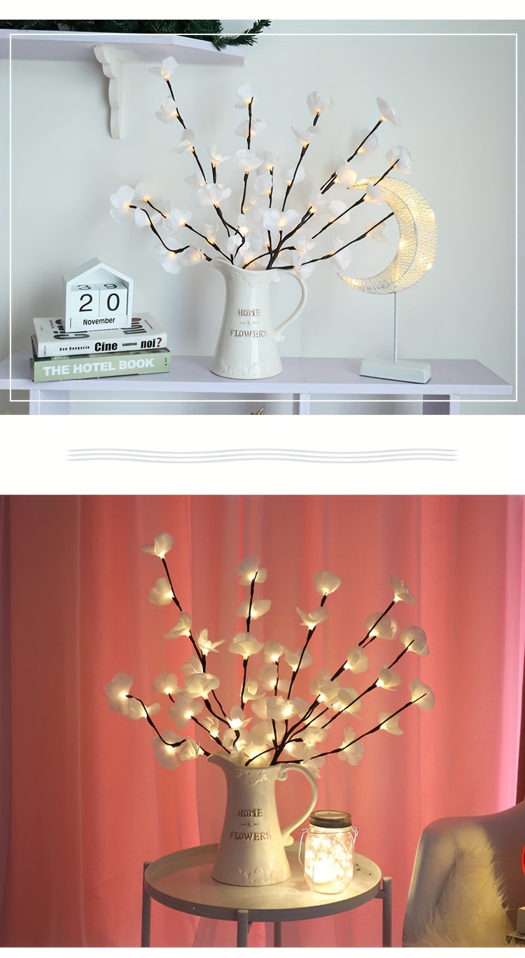 20pcs LED Willow Branch Lights pour la décoration de la maison, la décoration de chambre à coucher, la décoration de mariage, Noël, la Saint-Valentin, les lumières de décoration de la fête des mères, les piles non incluses (blanc)