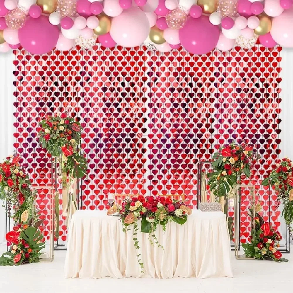 Ensemble de 4 rideaux à franges en plastique aux dimensions généreuses (39x79 pouces), ornés de motifs cœur pour la Saint-Valentin. Ces tentures polyvalentes conviennent aussi aux mariages, anniversaires et fêtes diverses. Sans produits chimiques préoccupants, elles offrent une décoration festive et économique. Idéales pour transformer rapidement votre espace en ambiance romantique ou célébratoire.