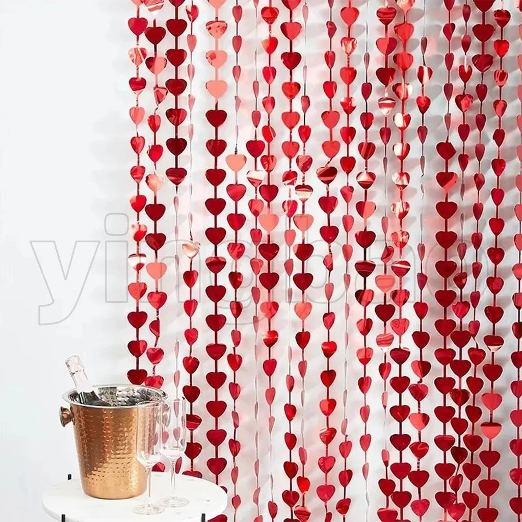 4 paquets 39x79 pouces rouge coeur forme guirlandes feuille frange rideau saint valentin