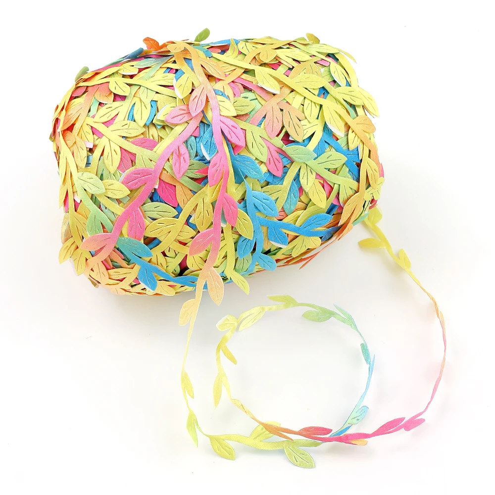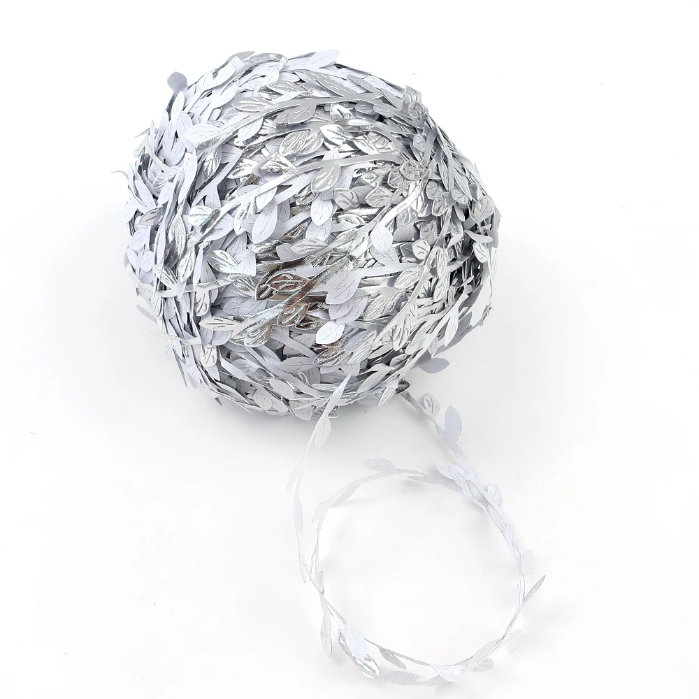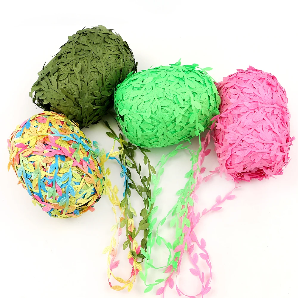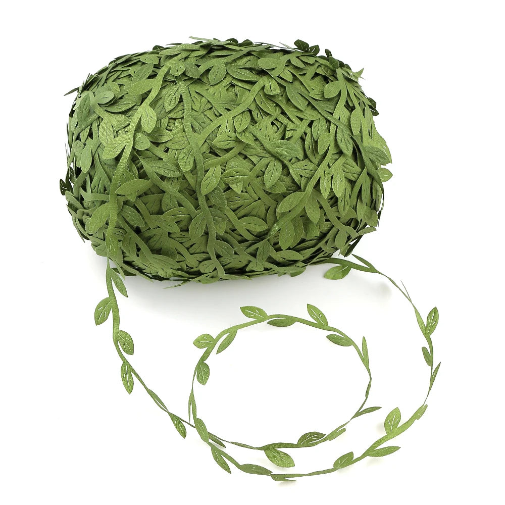 Feuilles artificielles en soie, 5 mètres, vertes et dorées, pour décoration de boîte de mariage, feuillage, scrapbooking, couronne artisanale