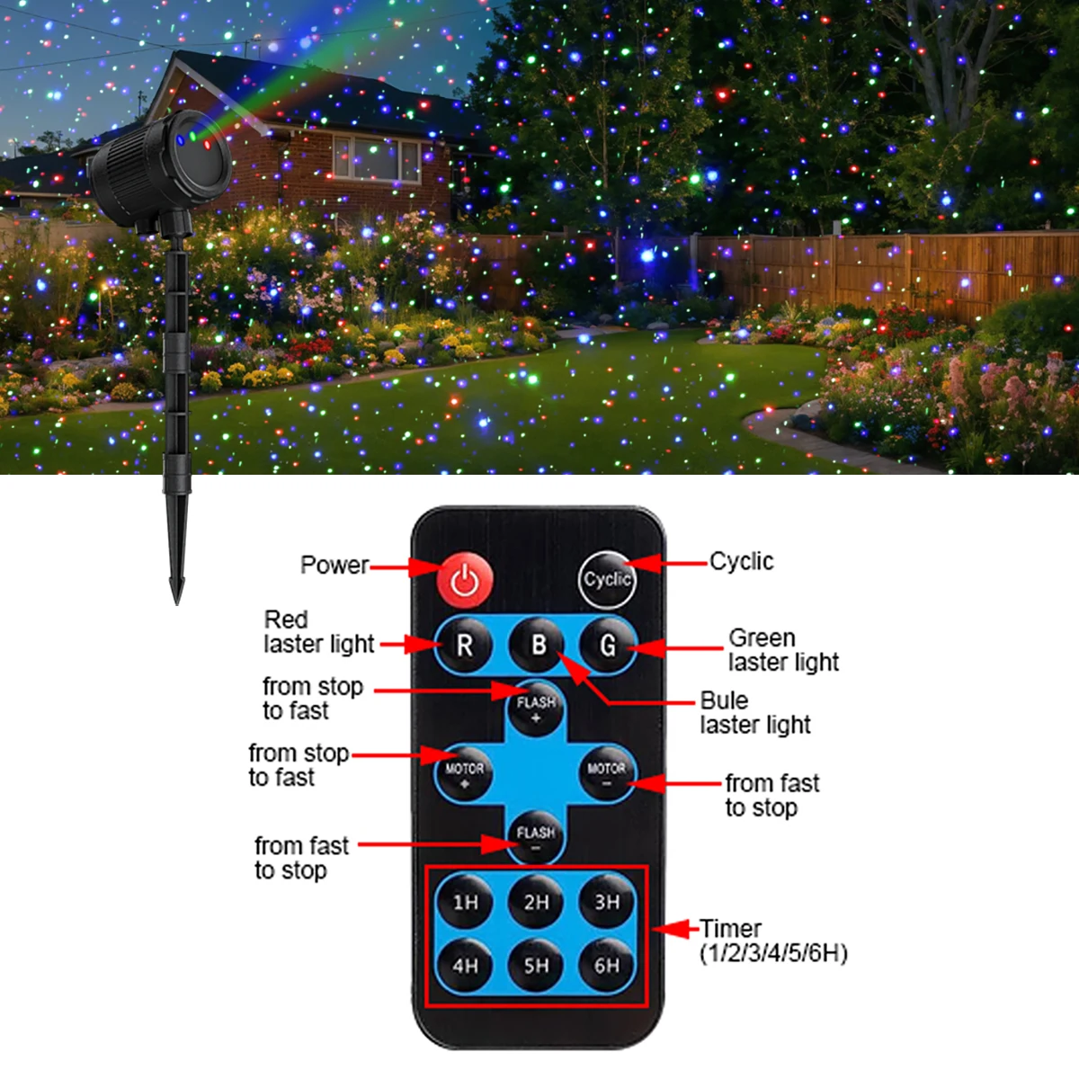 Facile et pratique à utiliser.Il peut changer la couleur de la lumière, le réglage du flash, la vitesse de rotation, la vitesse des étapes, le réglage statique et de la minuterie.La télécommande RF peut être utilisée librement dans un rayon de 10 mètres, ce qui est meilleur que l'infrarouge.
