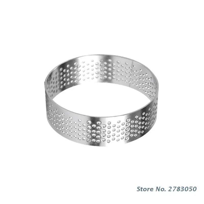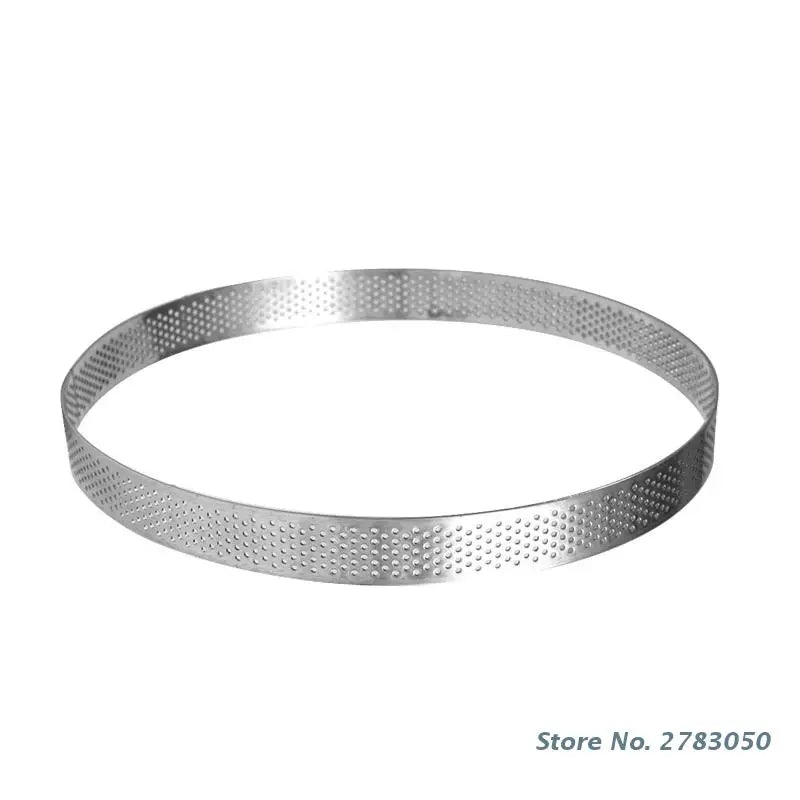 Moule à tarte perforé en acier inoxydable, conçu pour la pâtisserie française. Cet outil professionnel convient aux tartes aux fruits, quiches et mousses. Disponible en 9 dimensions pour adapter vos créations culinaires. Construction robuste en acier inoxydable garantissant durabilité et facilité de nettoyage. Accessoire incontournable pour les pâtissiers amateurs et confirmés.