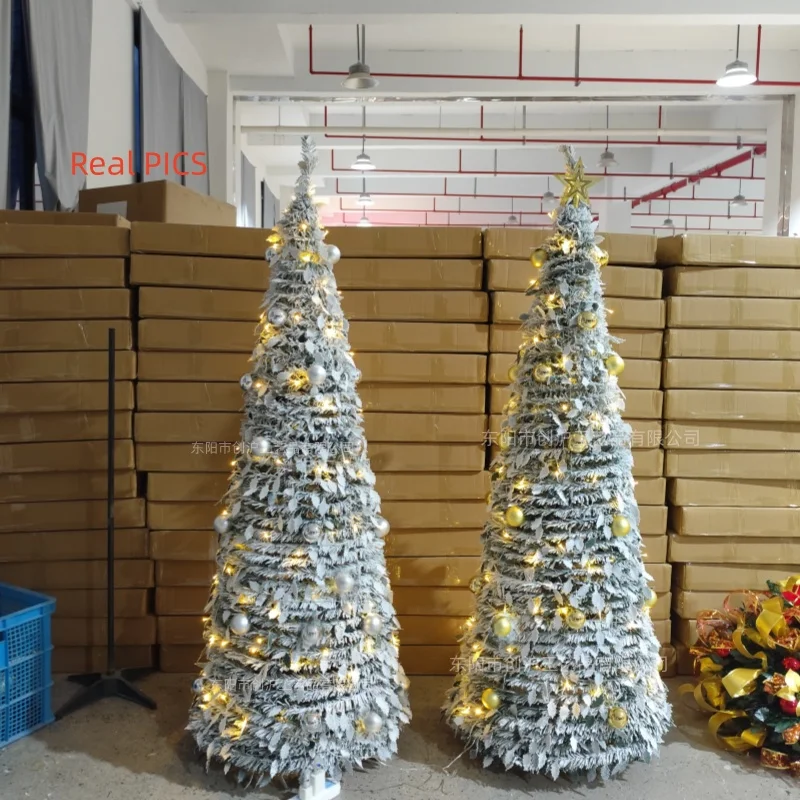 Sapin de Noël artificiel pliable avec décoration intégrée, prêt à l'emploi. Disponible en plusieurs hauteurs (2, 3, 4 ou 5 kg), ce modèle CH002 offre une solution festive pratique. Équipé d'éclairage lumineux et personnalisable selon vos préférences décoratives. Fabrication soignée pour un rendu authentique et durable. Parfait pour créer une ambiance chaleureuse sans effort d'installation complexe.