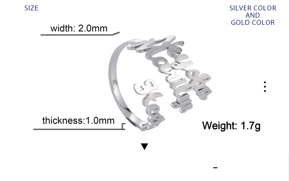 Cette bague personnalisée en acier inoxydable offre une création unique et intemporelle pour célébrer vos liens précieux. Gravée avec vos prénoms, elle combine élégance classique et signification personnelle. Son design épuré en finition or convient à tous les genres et occasions spéciales. Conçue pour durer, l'acier inoxydable garantit résistance et brillance durable. Parfaite comme cadeau de mariage, anniversaire ou symbole d'amour de couple, cette bague allie sophistication et émotion. Idéale pour ceux qui recherchent un bijou significatif et personnalisé qui célèbre les moments importants avec style intemporel.