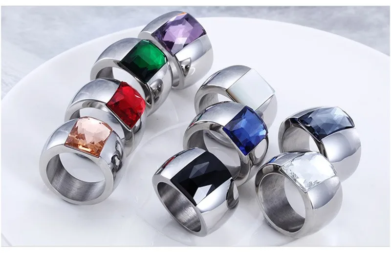 Description: Stainless steel ring, crystal ring, titanium ring |