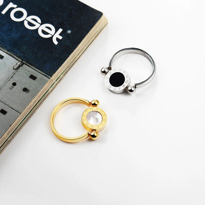 Bague en acier inoxydable pour femmes, Design classique, peut être tourné, émail et coquille, chiffres romains, belle bague de marque, bijoux pour femmes