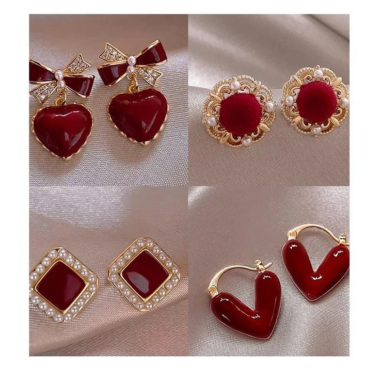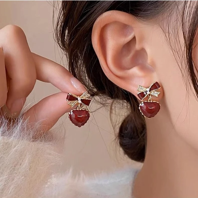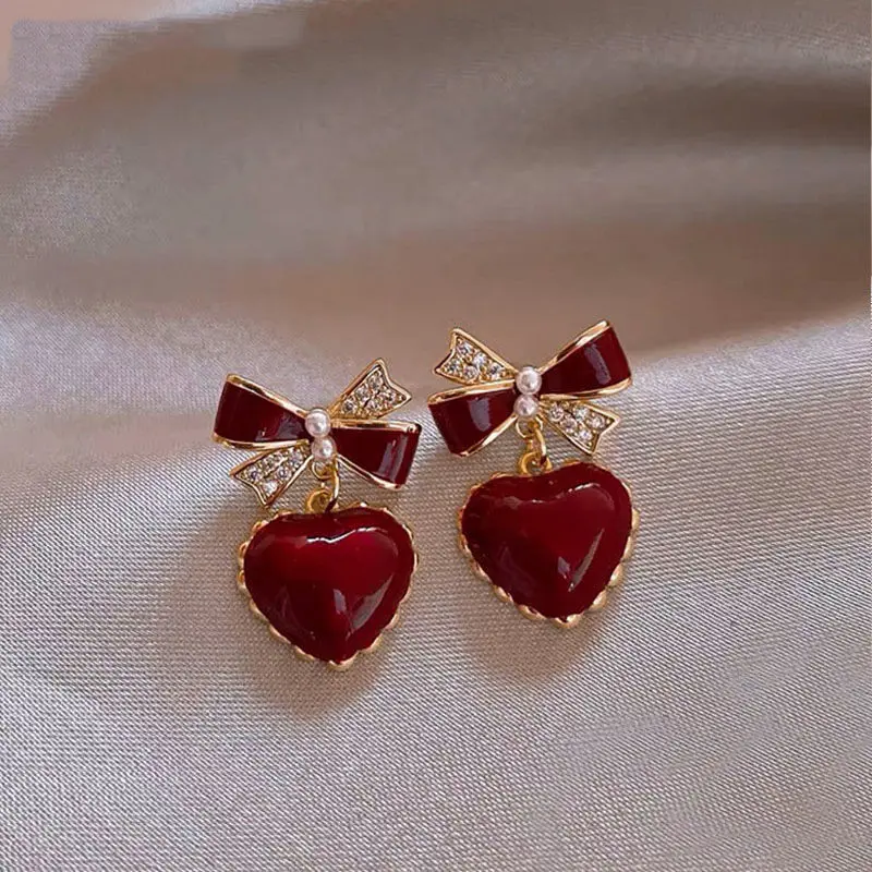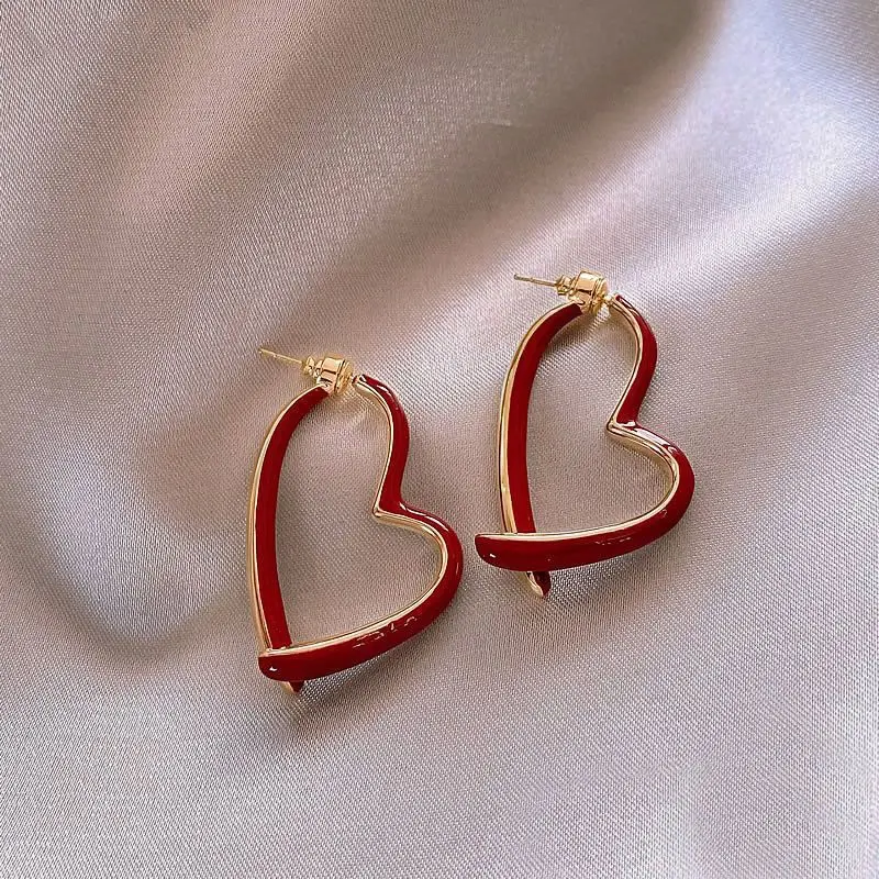 Boucles d'oreilles émaillées en forme de cœur pour femmes