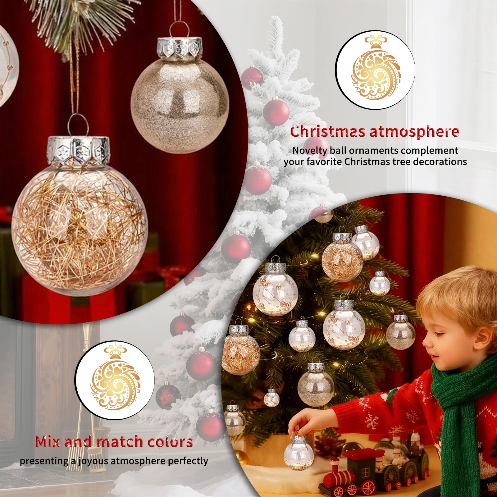 Boules décoratives de Noël transparentes en PET, 24 pièces, ornements d'arbre de Noël