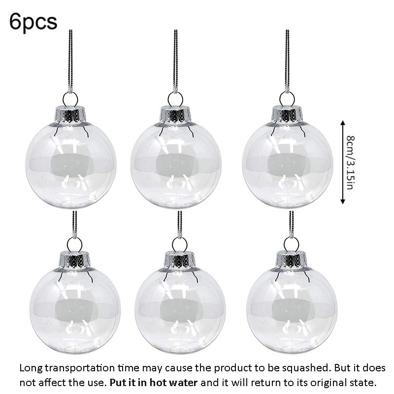 Boules en plastique transparent 6/8/10cm, boules d'arbre de Noël avec corde