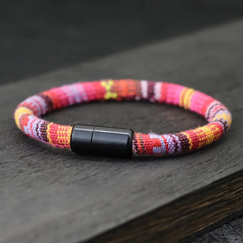 Bracelet bohème Tissu hommes Magentic porte-bonheur