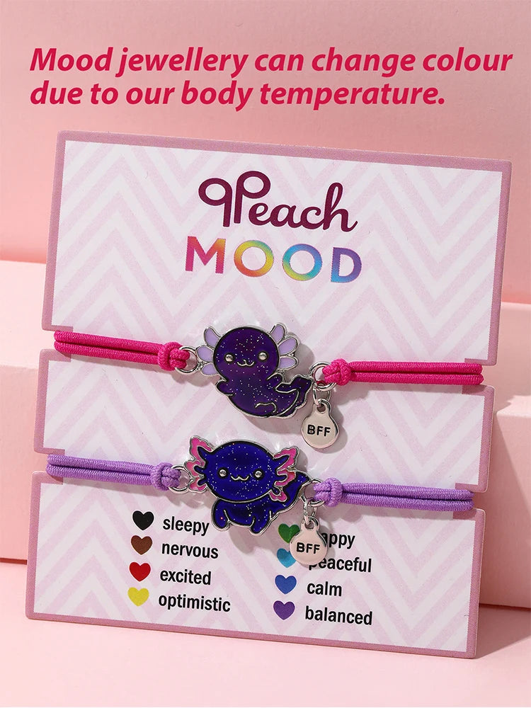 Bracelets d'amitié à couleur changeante, 2 pièces/ensemble, breloque mignonne, tortue, Animal, papillon, dessin animé grenouille, pour enfants