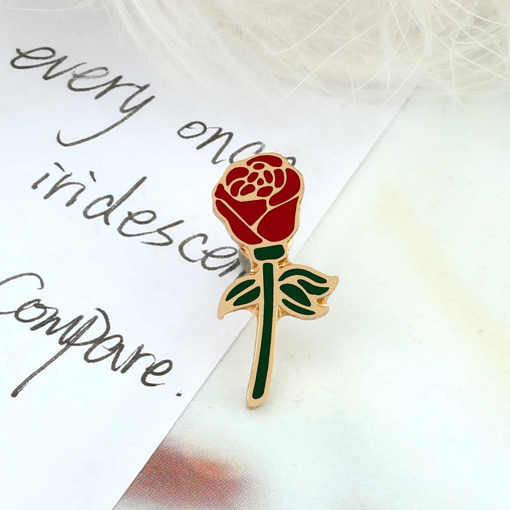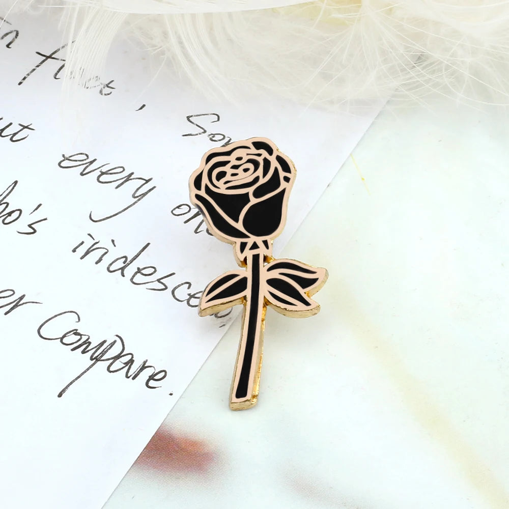 Broches romantiques pour Couple, Rose rouge et noire