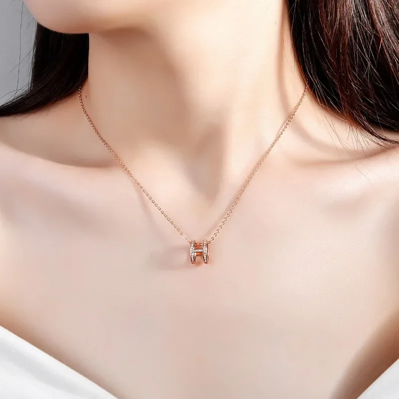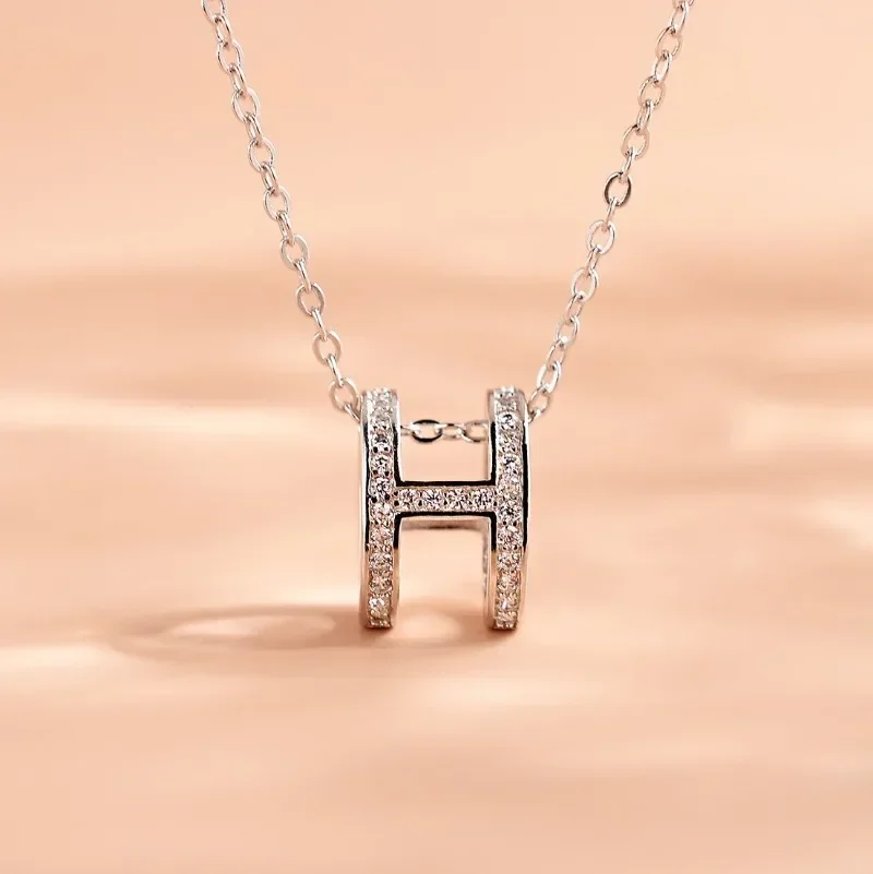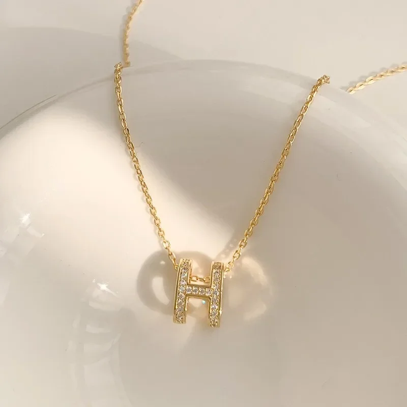 Collier pendentif lettre H, avec chaîne de clavicule incrustée, chaîne de clavicule design de niche, collier de vêtements à la mode