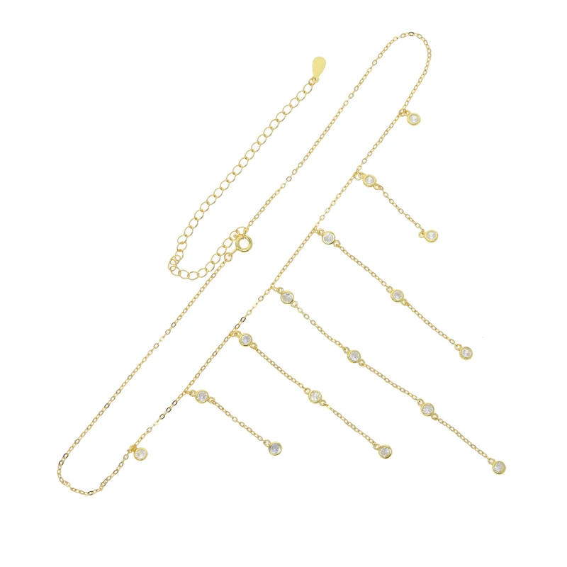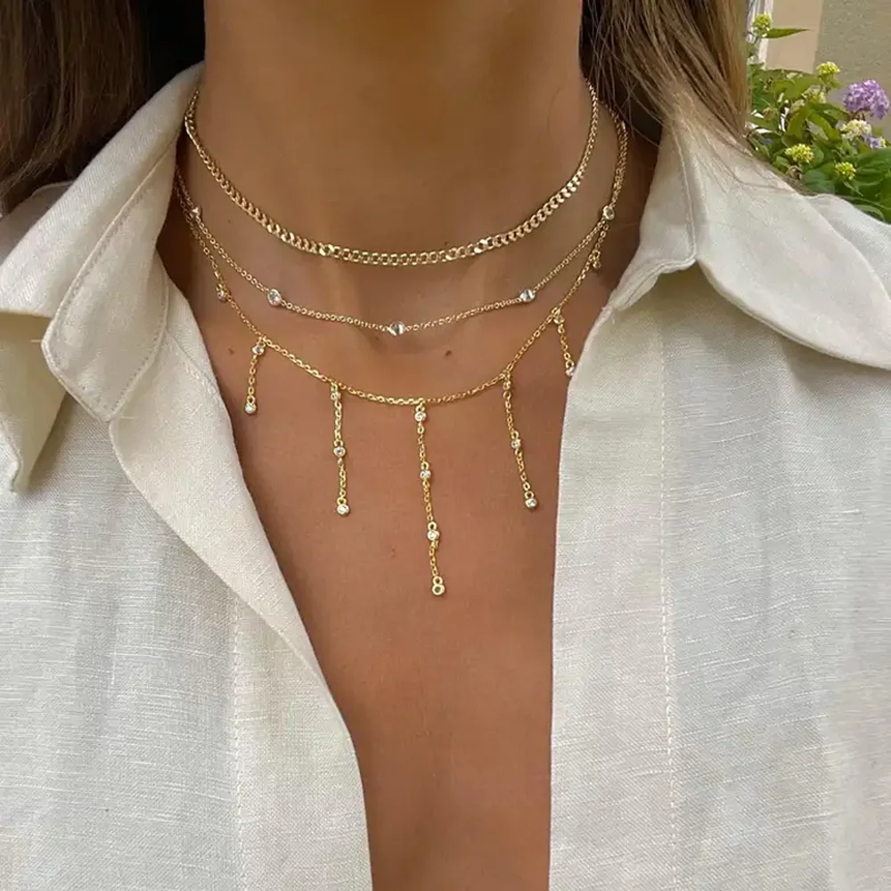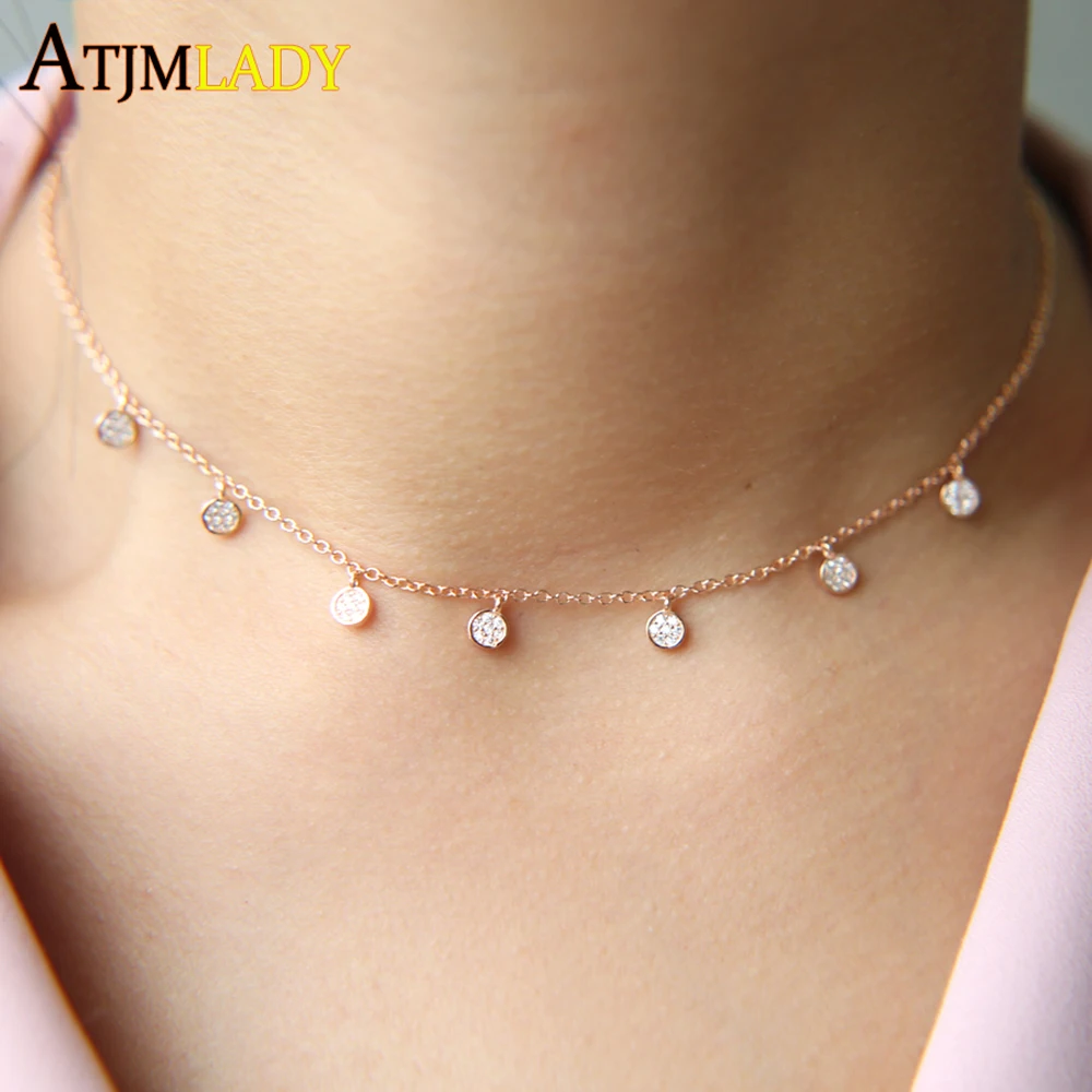 Collier ras du cou en argent Sterling 925 pour femmes, Station CZ transparente, multi-charmes, à la mode, délicat, points Disco, goutte d'eau, pendentif