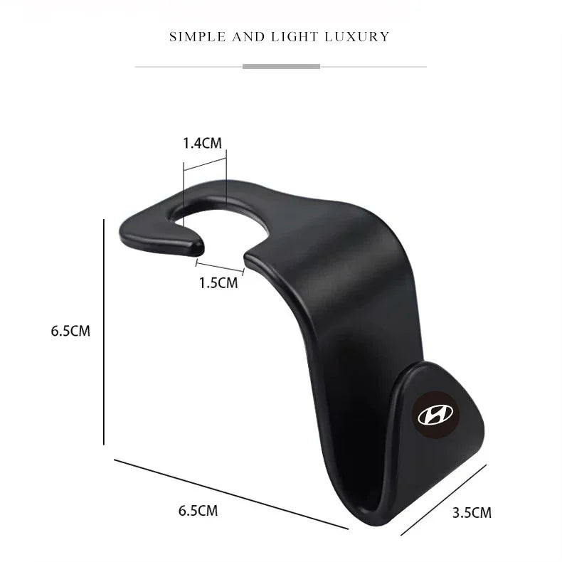 Marque : HYUNDAI Origine : CN (Chine) Description : Crochet universel pour appui-tête de siège automobile, conçu pour suspendre sacs et organiser le dossier du siège. Cet accessoire de fixation sécurisé facilite le rangement intérieur de votre véhicule, compatible avec plusieurs modèles Hyundai tels que i30, Tucson, i20, Accent, i10, Elantra, Veloster et Getz.