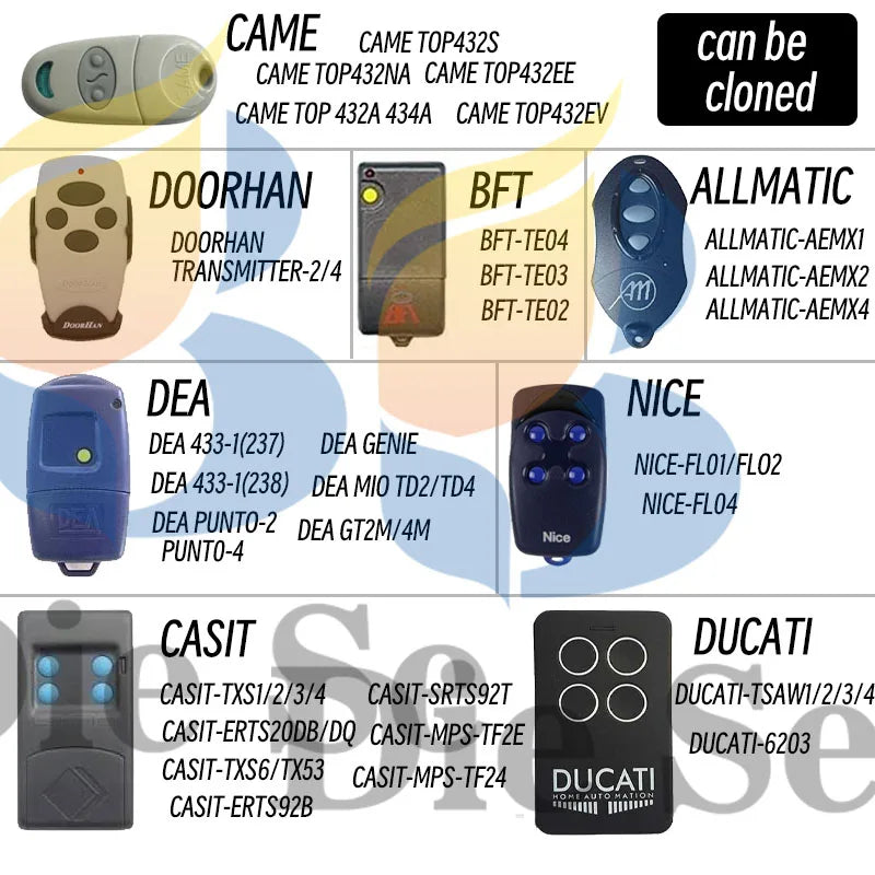 Diese 433MHz RF Clone télécommande copie transmetteur clonage apprentissage duplicateur de Code fixe pour porte de Garage CAME NICE Doorhan