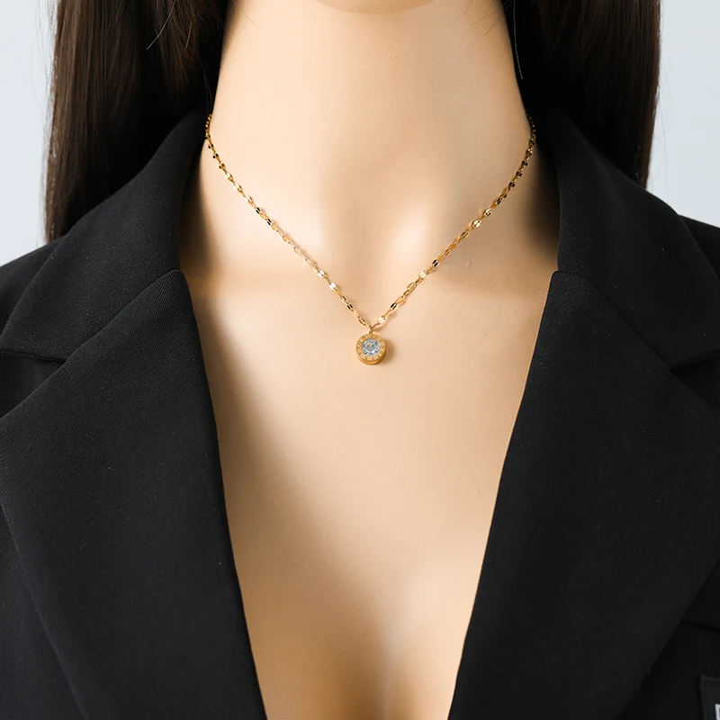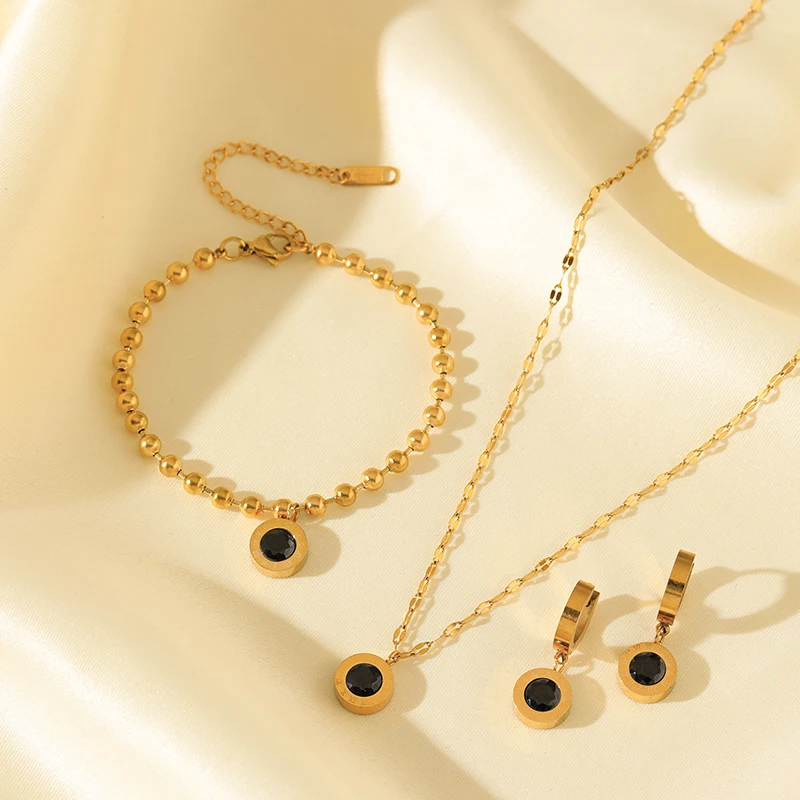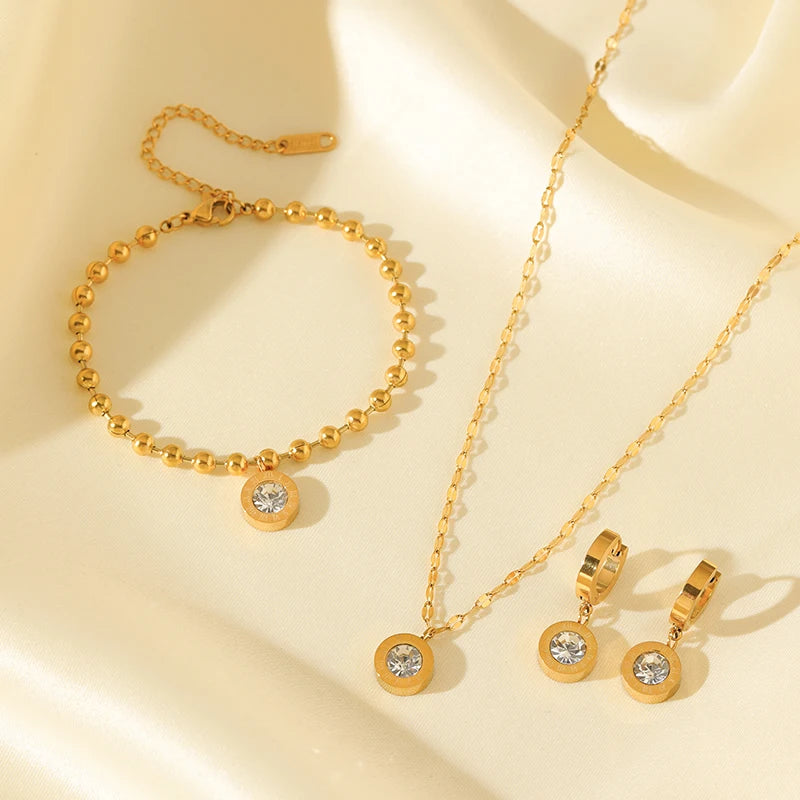 EILIECK 316L acier inoxydable chiffre romain Zircon collier Bracelets boucles d'oreilles ensemble