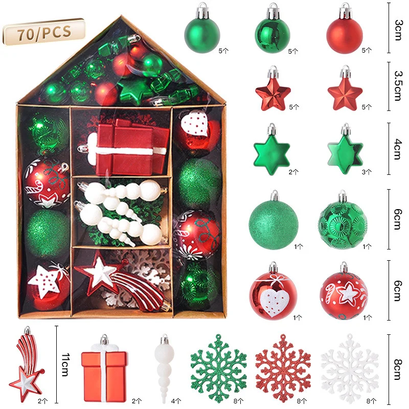 Ensemble de boules de noël, 70 pièces, pendentif suspendu pour arbre de Noël