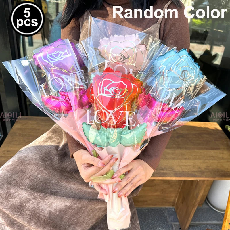 Grands ballons roses rouges de mariage, ballons en aluminium en forme de fleur de Rose, décorations cadeaux d'anniversaire pour la fête des mères, cadeaux d'anniversaire