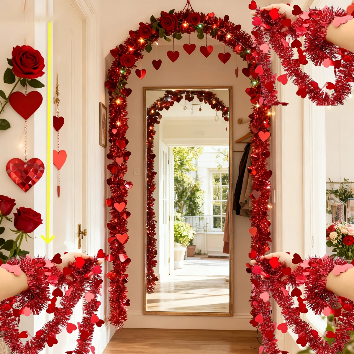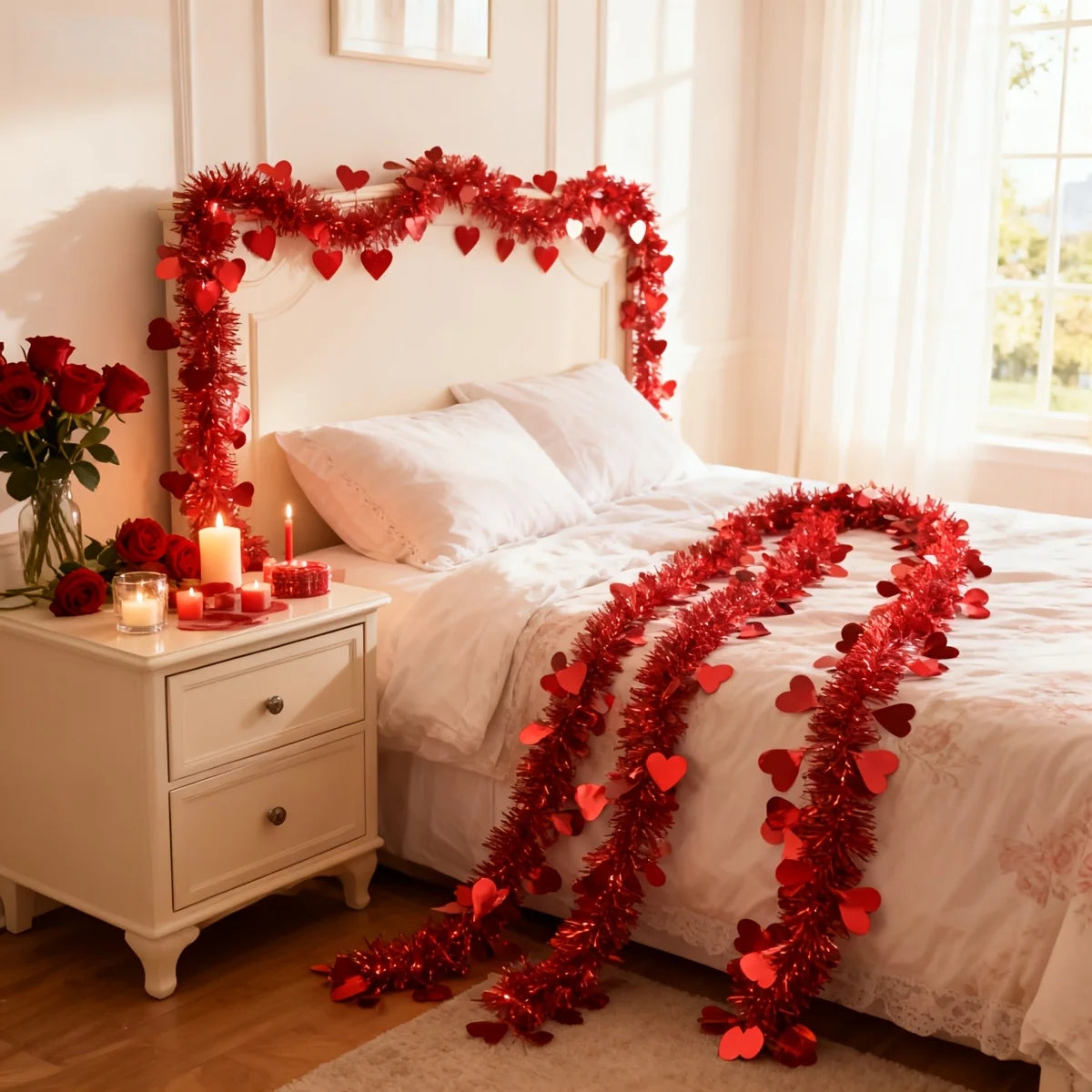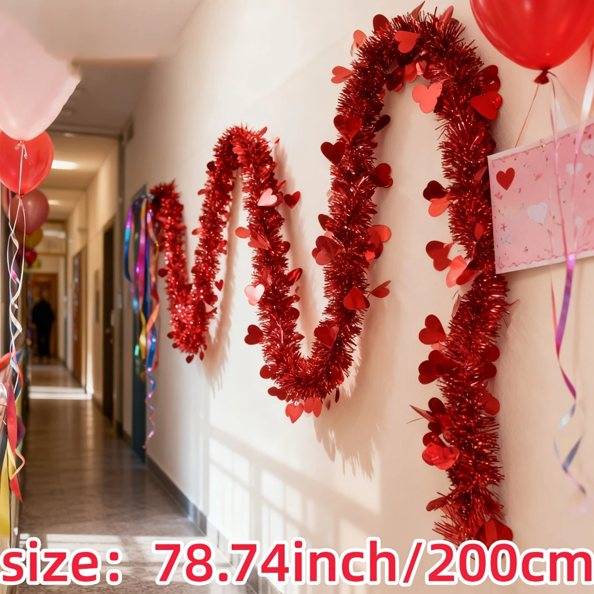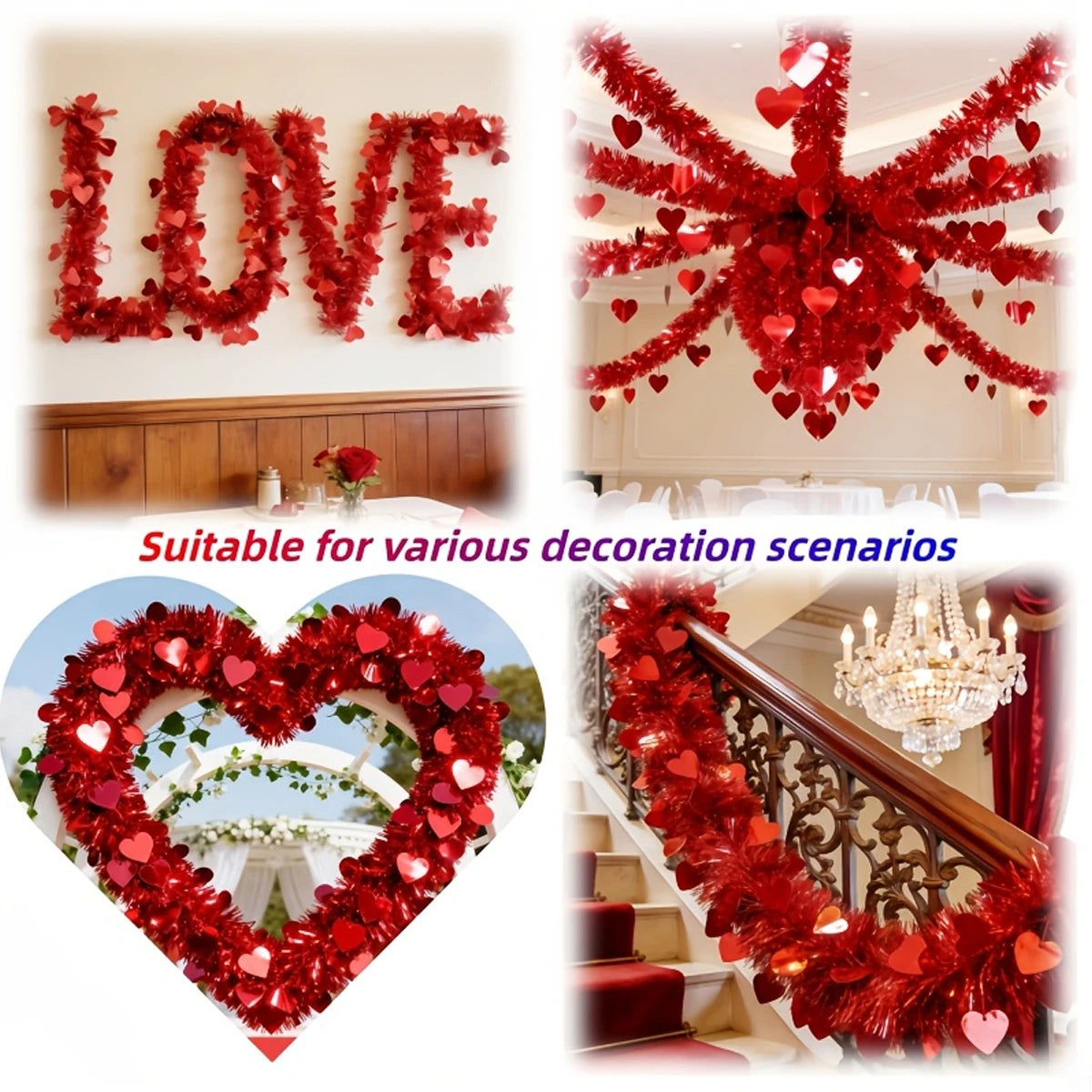 Guirlande festive en polypropylène de 4 mètres, conçue pour sublimer vos espaces lors de la Saint-Valentin. Ce décor en forme de cœur allie légèreté et durabilité, sans substances chimiques préoccupantes. Parfait pour créer une ambiance romantique et chaleureuse, il s'installe facilement en suspension. Un choix pratique et élégant pour les célébrations de l'amour.