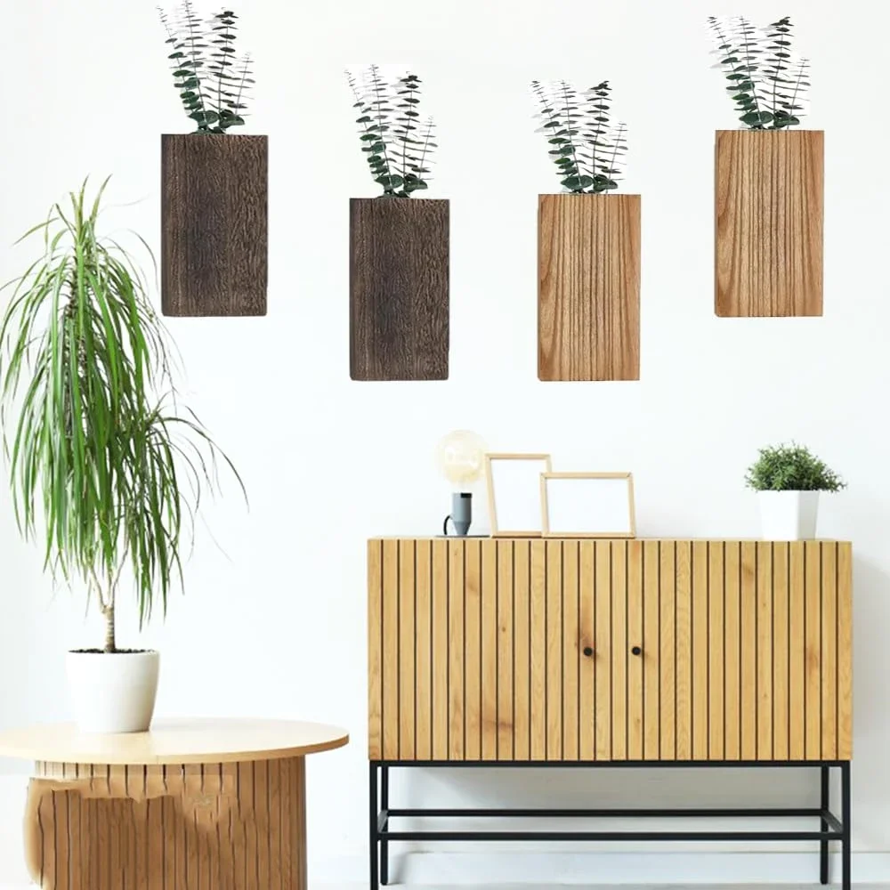 Jardinière murale en bois de ferme, paquet de 2 Vase suspendu avec fausses fleurs séchées d'eucalyptus, décor pour salon, chambre à coucher, maison