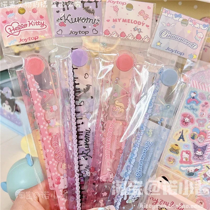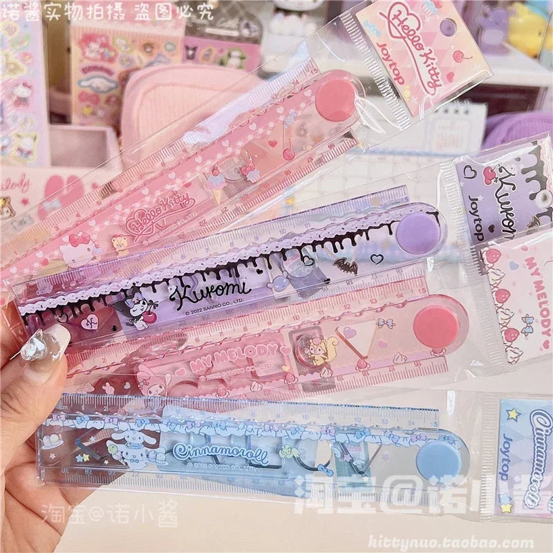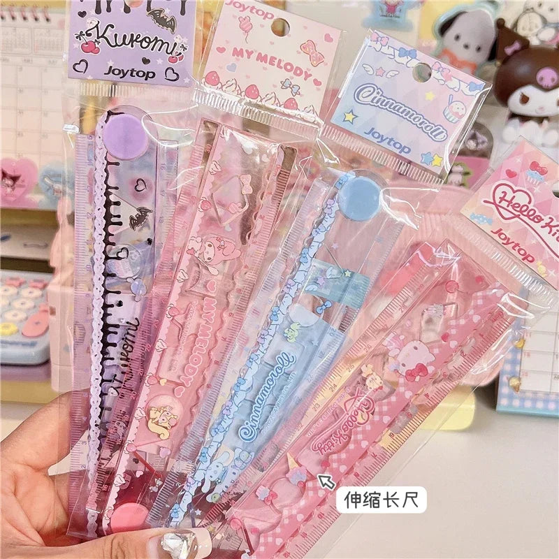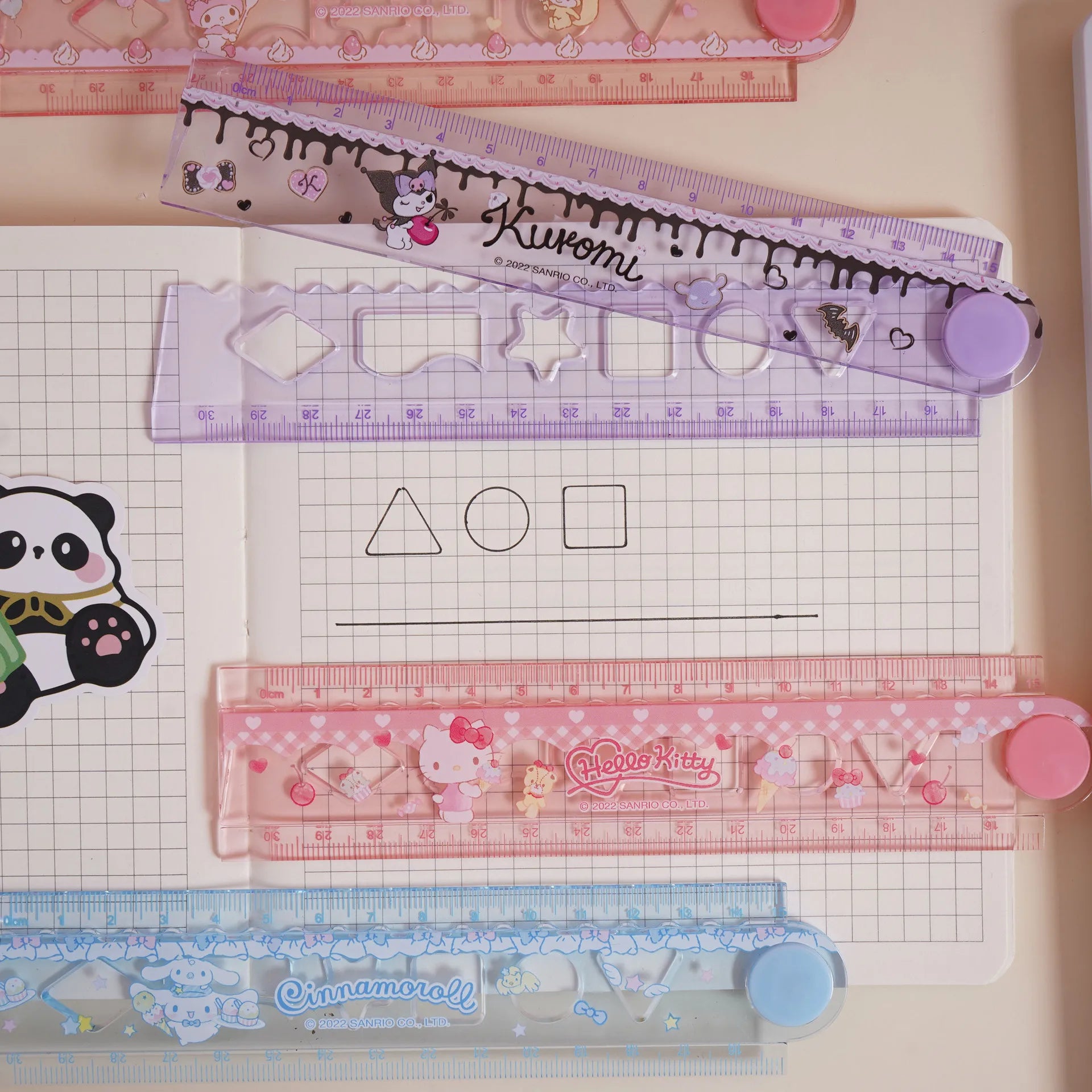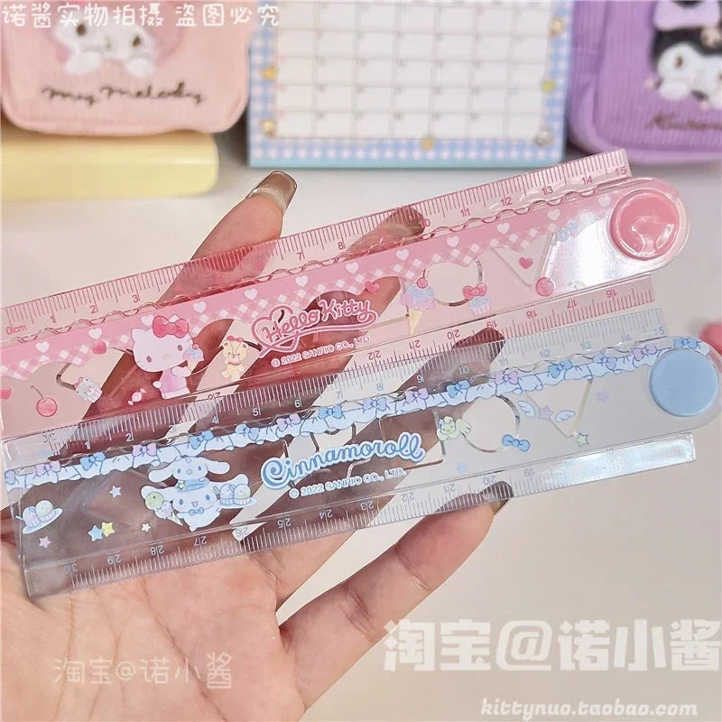 Kawaii Hello Kitty ma mélodie Kuromi 30Cm dessin animé échelle en plastique étudiant papeterie Anime Sanrio fille coeur mignon règle rétractable