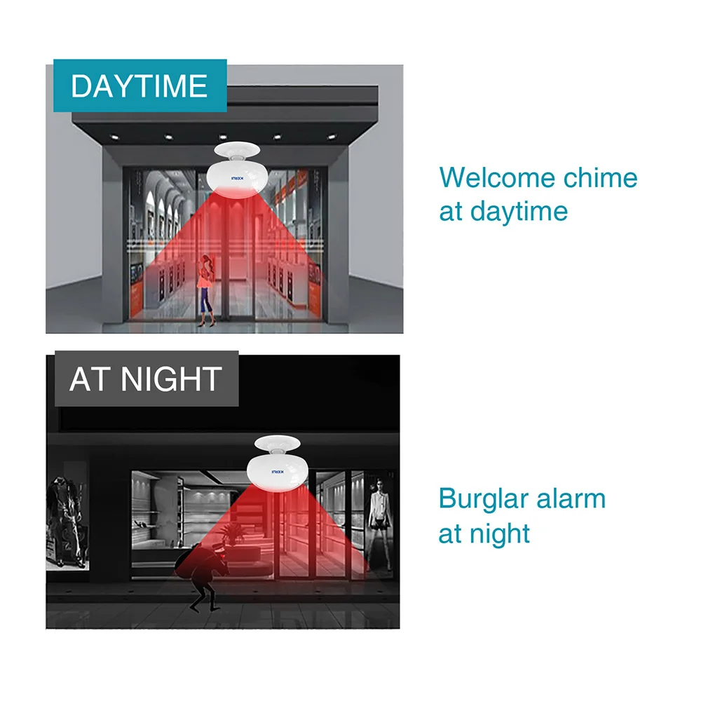 KERUI M7 bienvenue capteur de mouvement alarme de sécurité 32 chansons carillon sans fil maison intelligente LED veilleuse porte fenêtre magasin