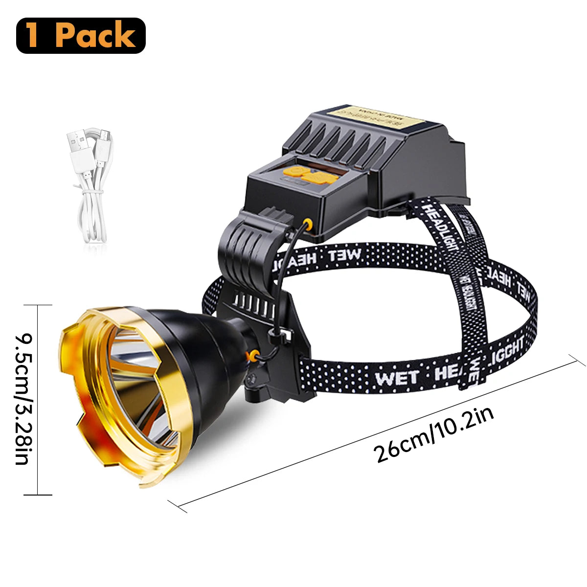 Lampe de poche LED aste super lumineuse, lampe frontale portable, extérieur, chasse, camping de pêche