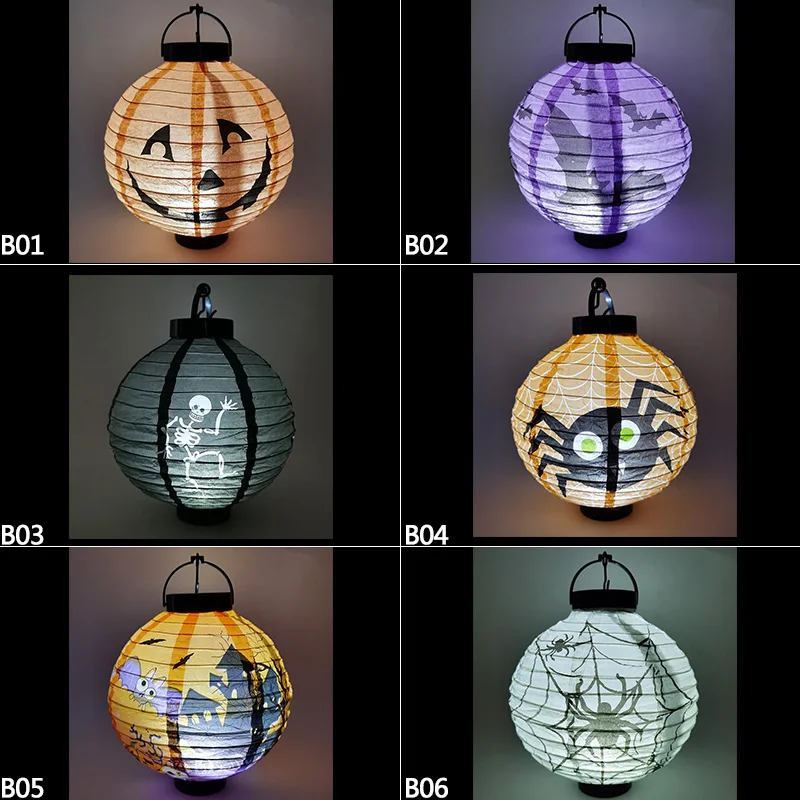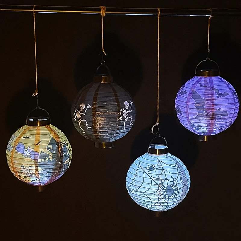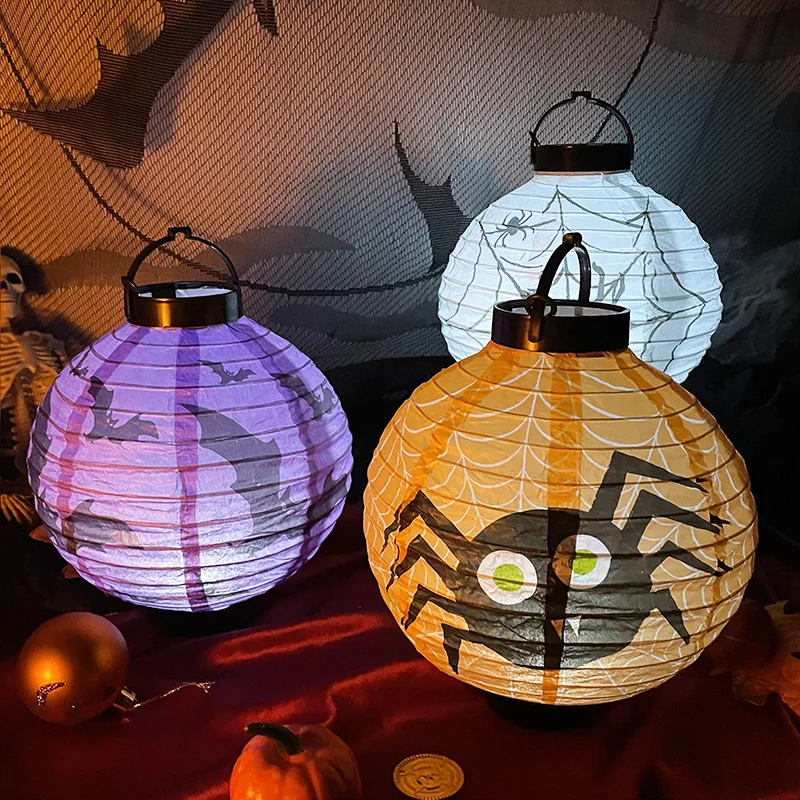 Lanterne LED en papier citrouille pour Halloween, lanterne suspendue avec impression de crâne d'araignée et de chauve-souris, décoration extérieure pour Festival, fête, maison, jardin