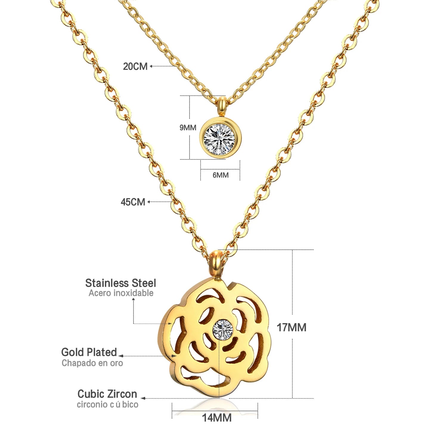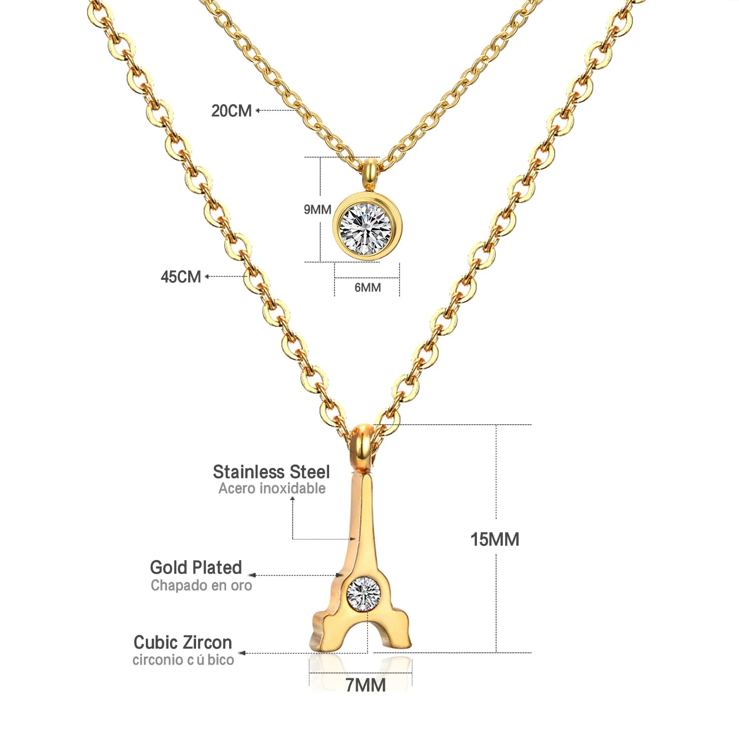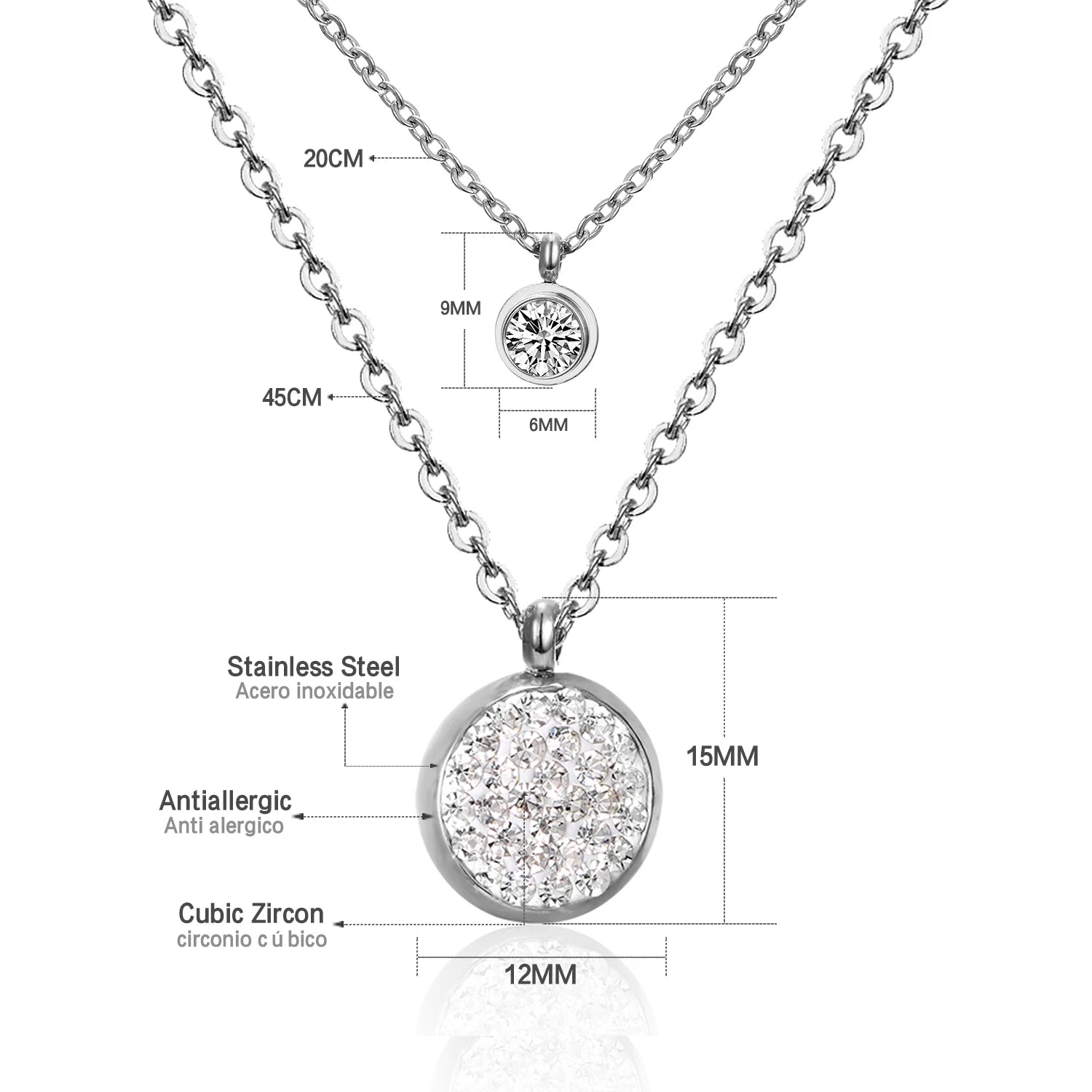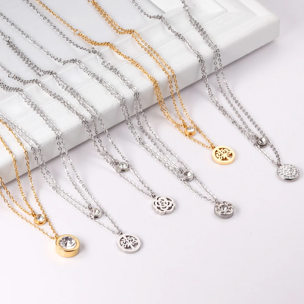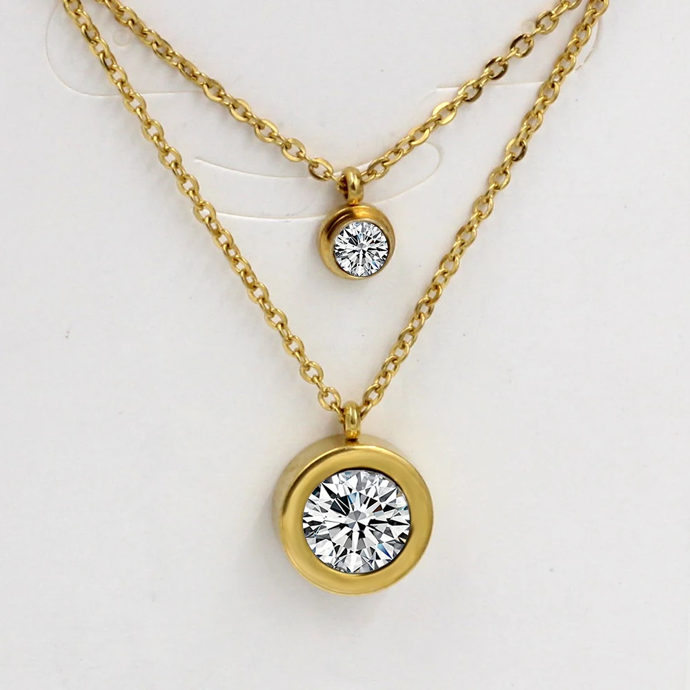 Collier multi rang acier inoxydable,colliers à pendentif Double couche en Zircon cubique pour femmes, bijoux dorés de luxe, ras du cou, en acier inoxydable