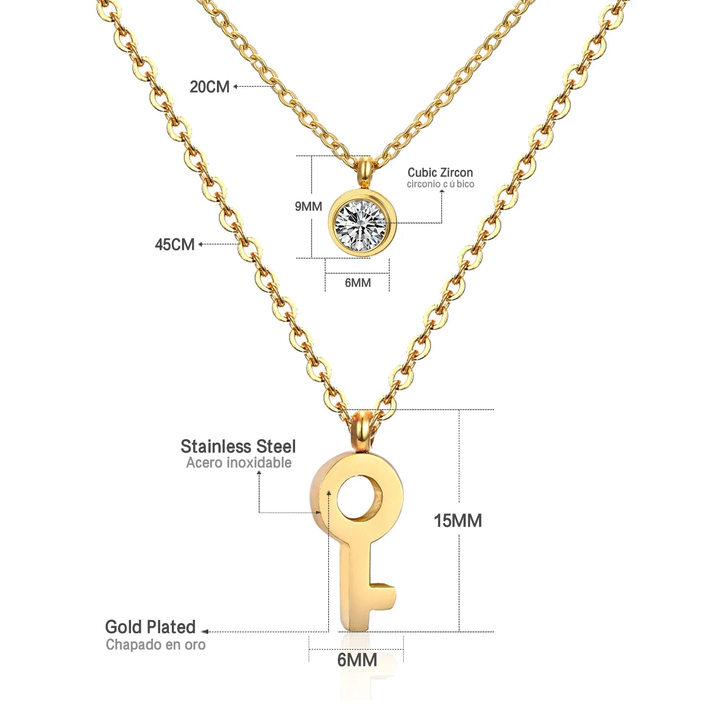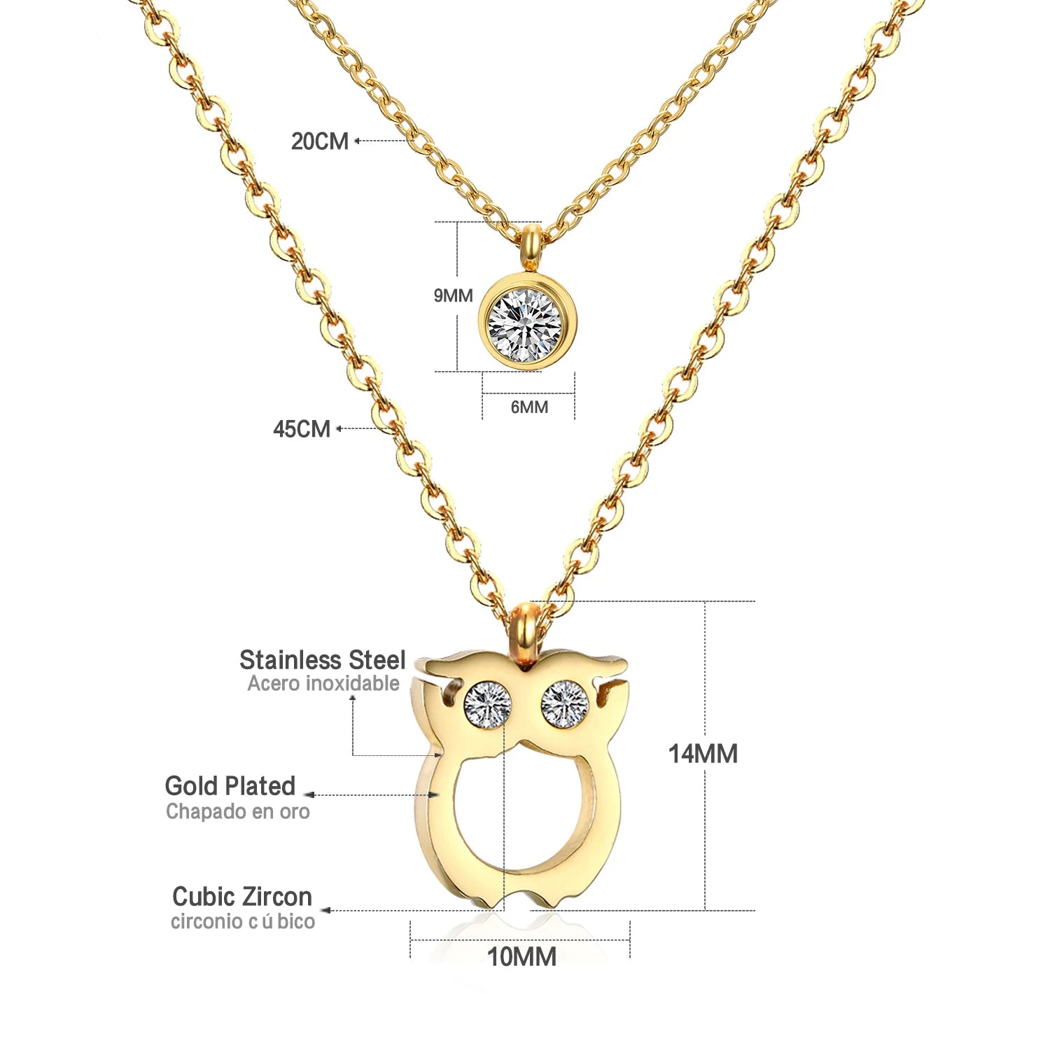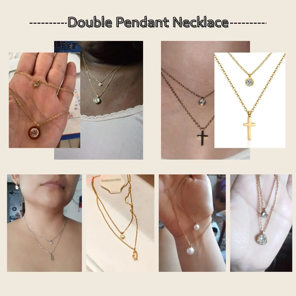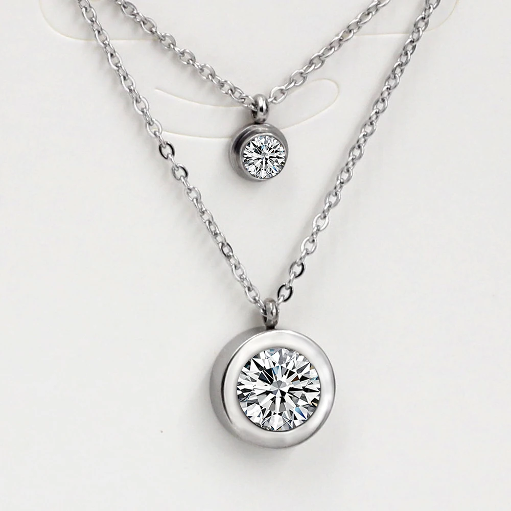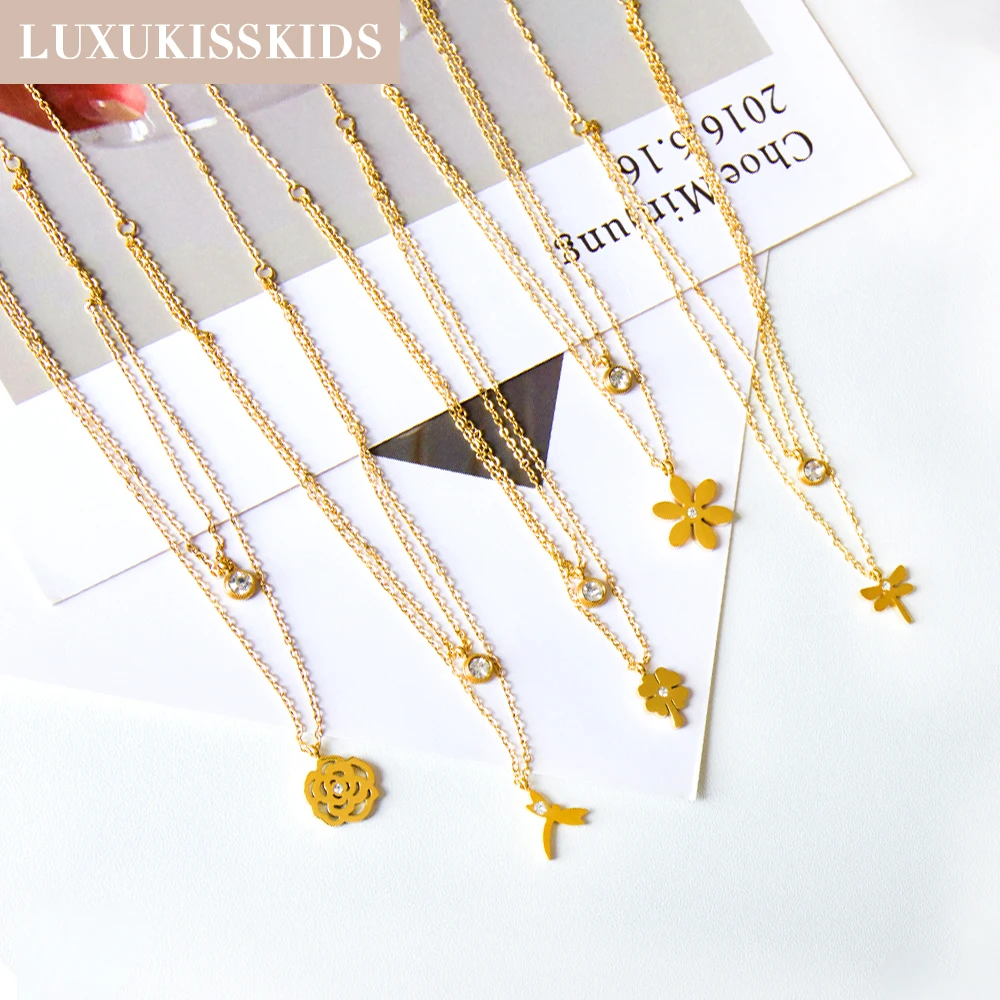 Collier multi rang acier inoxydable,colliers à pendentif Double couche en Zircon cubique pour femmes, bijoux dorés de luxe, ras du cou, en acier inoxydable