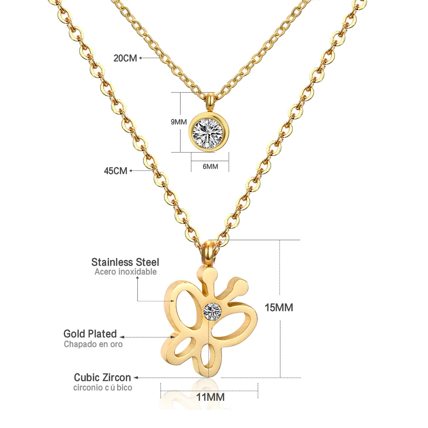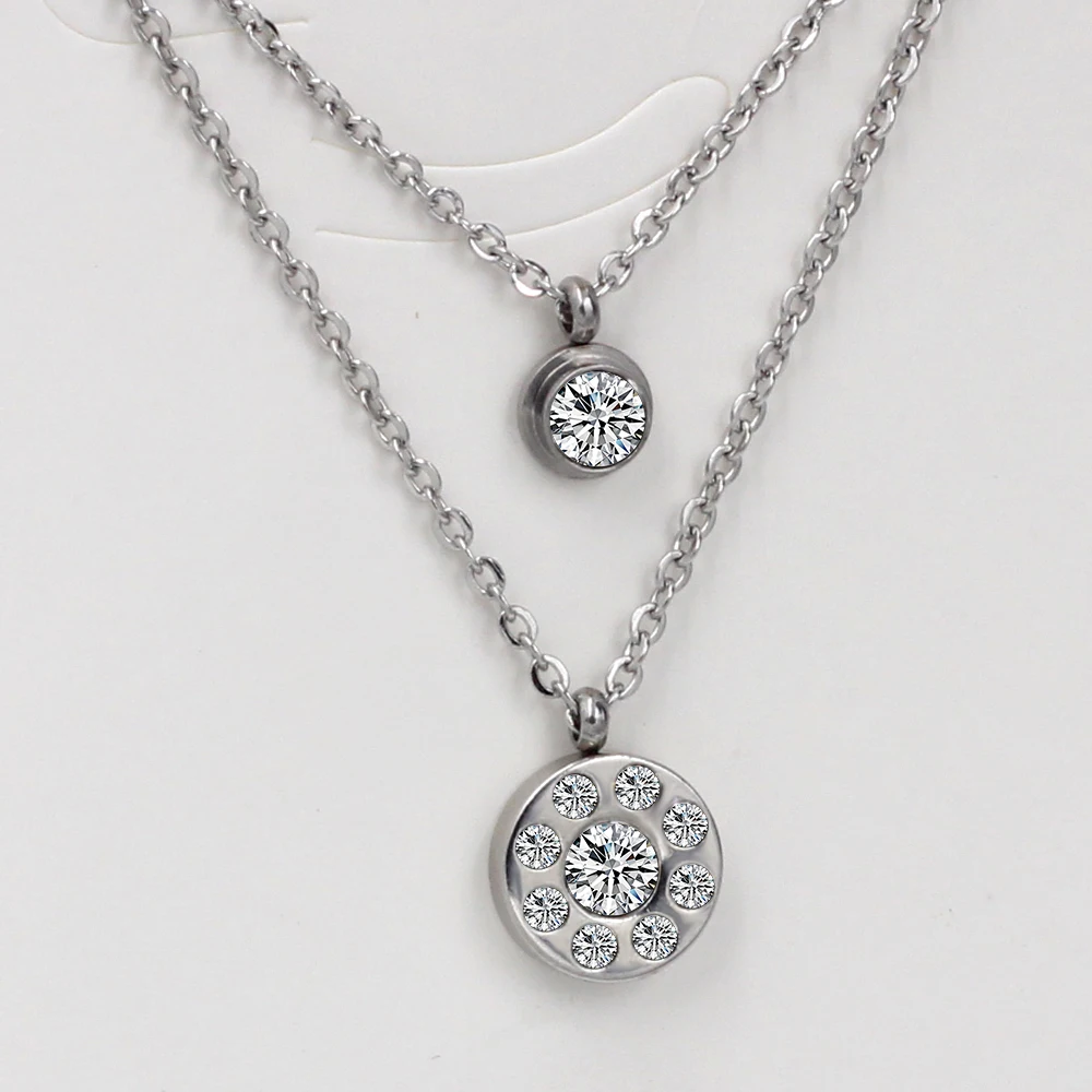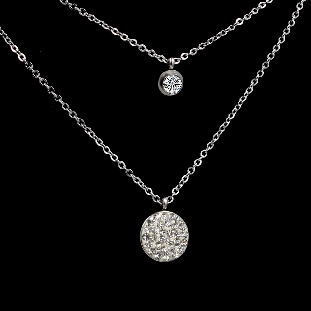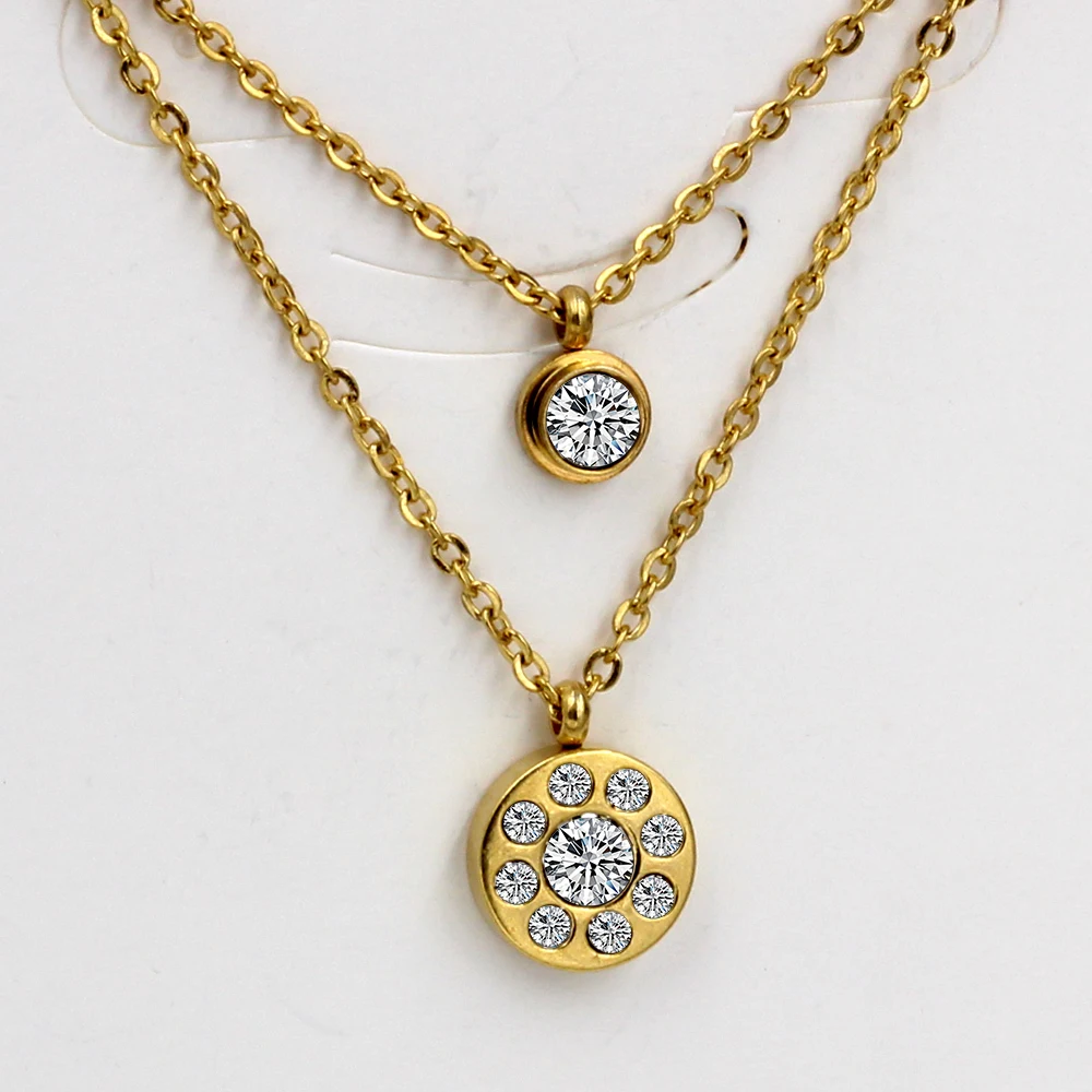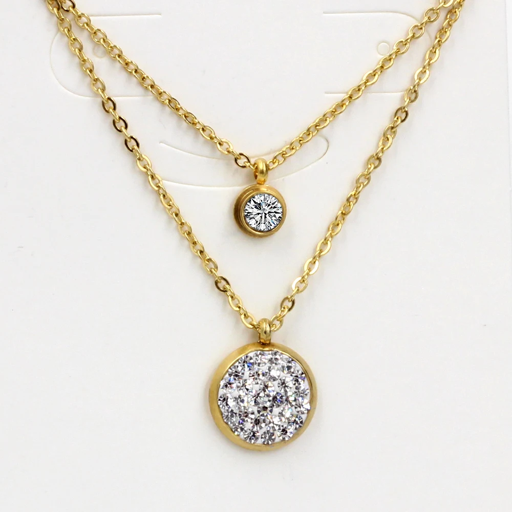Collier multi rang acier inoxydable,colliers à pendentif Double couche en Zircon cubique pour femmes, bijoux dorés de luxe, ras du cou, en acier inoxydable
