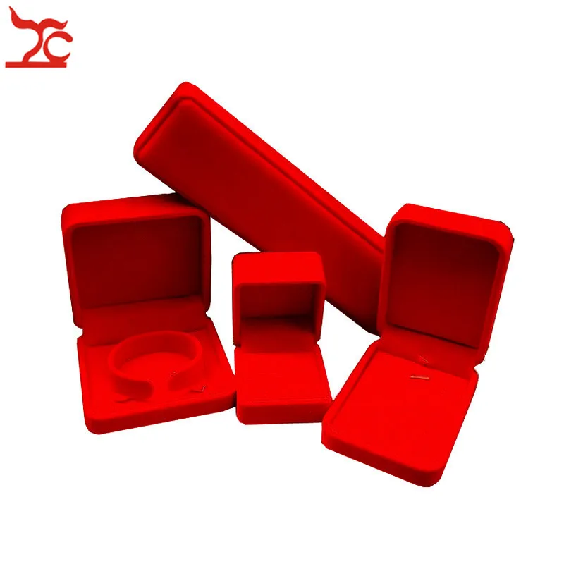 Coffret de rangement en velours rouge pour bijoux de mariage. Comprend quatre compartiments distincts : boîte à bagues (5×5,8×5 cm), pendentif (10×7×3,5 cm), bracelet (9×9×4 cm) et collier (22×5×3 cm). Protection optimale de vos pièces précieuses dans un écrin élégant.