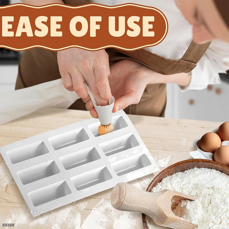 Moule à gâteau en rondins à 9 cavités cylindriques, conçu pour la cuisson de rouleaux 3D, pains de chocolat et barres énergétiques. Chaque cavité accueille 6 onces de préparation, offrant une capacité généreuse pour vos créations. Fabriqué en silicone écologique certifié aux normes internationales (CE, SGS, LFGB), ce moule garantit sécurité alimentaire et durabilité. Disponible en coloris blanc et marron, il combine fonctionnalité et esthétique. Parfait pour les pâtissiers souhaitant créer des desserts cylindriques sophistiqués, ce moule facilite la cuisson uniforme et le démoulage sans effort. Un accessoire polyvalent pour transformer vos créations en véritables délices gourmands.