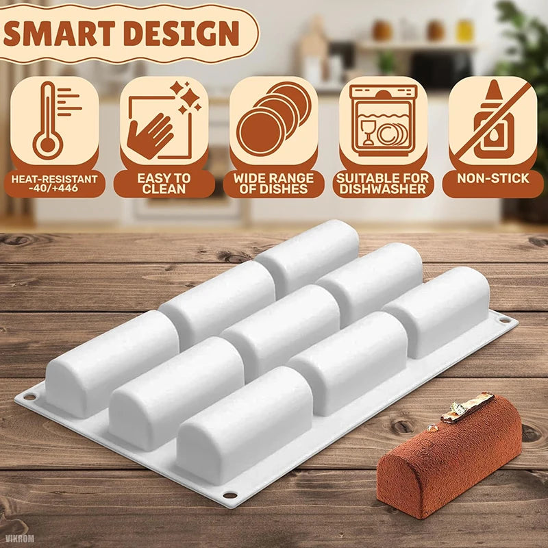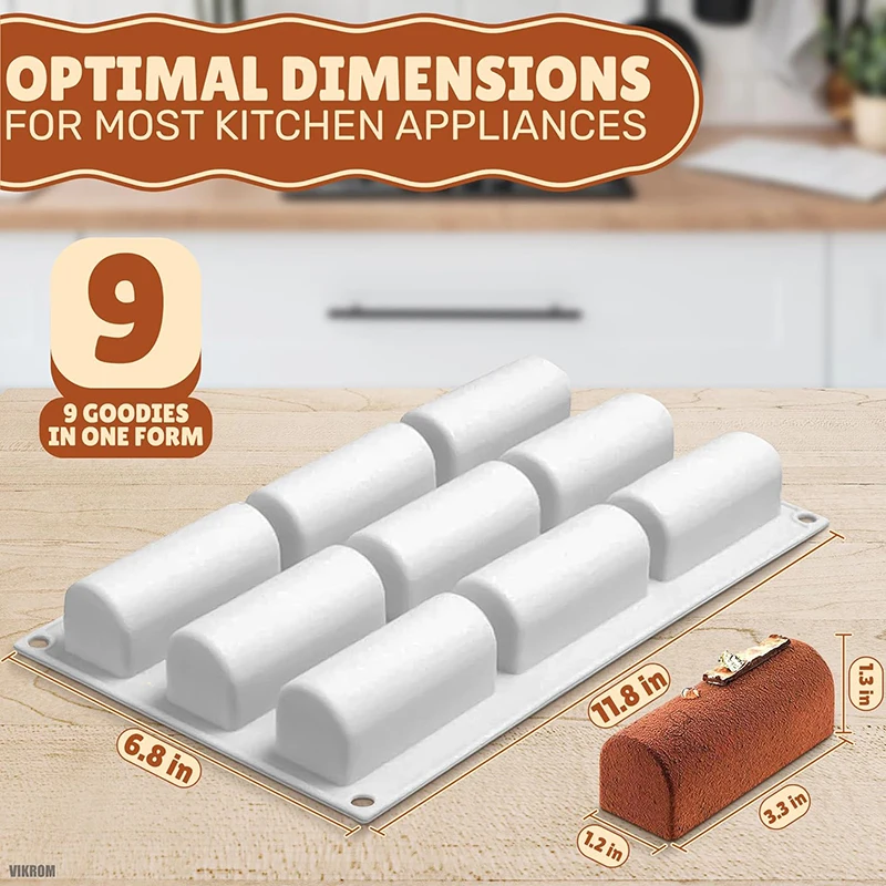 Moule à gâteau en rondins à 9 cavités, pour la cuisson, rouleau 3D, cylindre, pâtisserie, Dessert, pain de chocolat, protéines et barre énergétique, accessoires de cuisine.