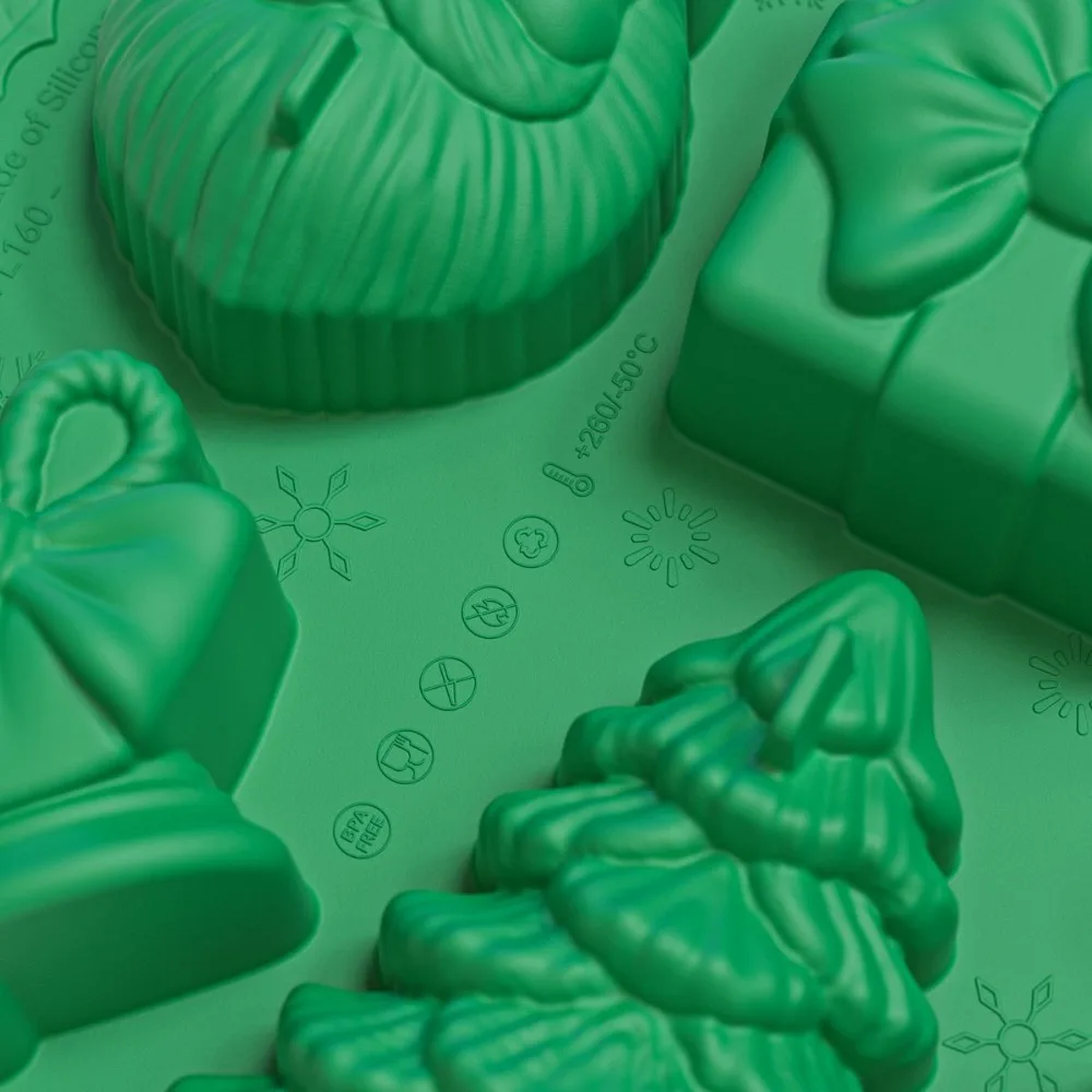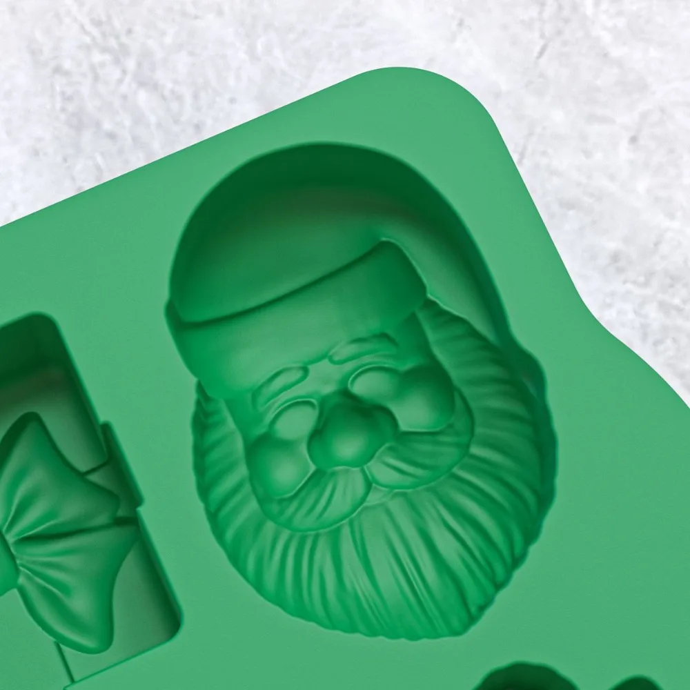 Moule de pâtisserie en silicone aux motifs festifs de Noël, présentant Père Noël, bonhomme de neige et sapin. Cet outil antiadhésif de dimensions généreuses (22x30x4,6 cm) permet de créer fondants, chocolats, bonbons et décors sophistiqués pour vos créations de vacances. Fabriqué en silicone alimentaire écologique sans composés chimiques préoccupants, il offre flexibilité et démoulage sans effort. Parfait pour transformer gâteaux et pâtisseries en véritables œuvres festives, ce moule combine praticité et créativité. Un accessoire indispensable pour les pâtissiers souhaitant ajouter une dimension magique et thématique à leurs réalisations hivernales.