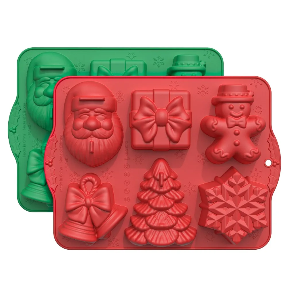 Moule de cuisson de noël en Silicone, pour bonbons, chocolat, Fondant, outils de décoration de gâteaux de vacances antiadhésifs, moules d'arbre de bonhomme de neige du père noël