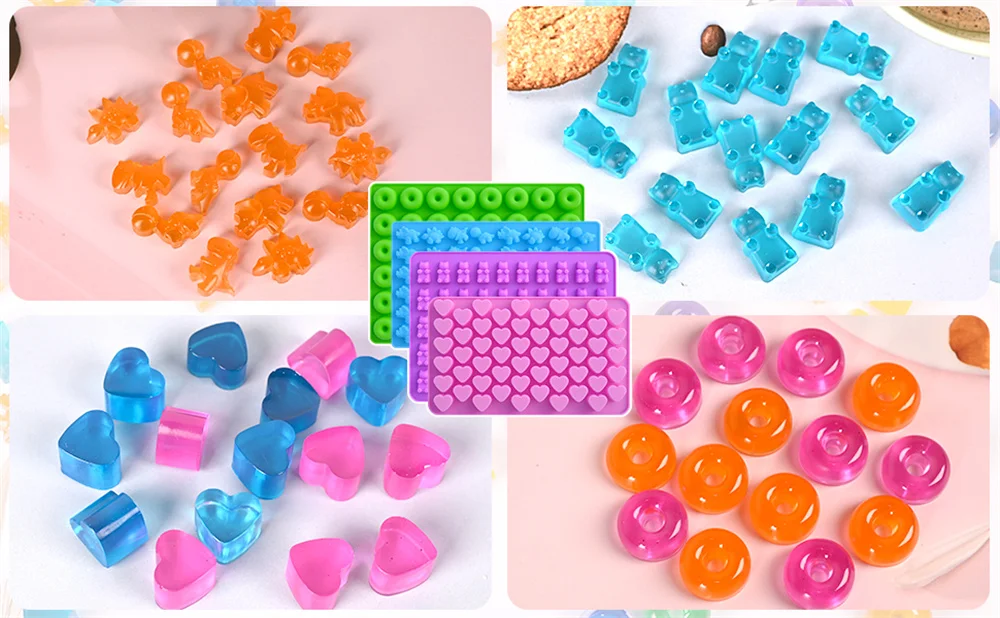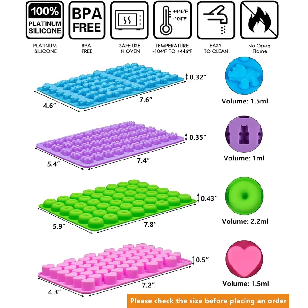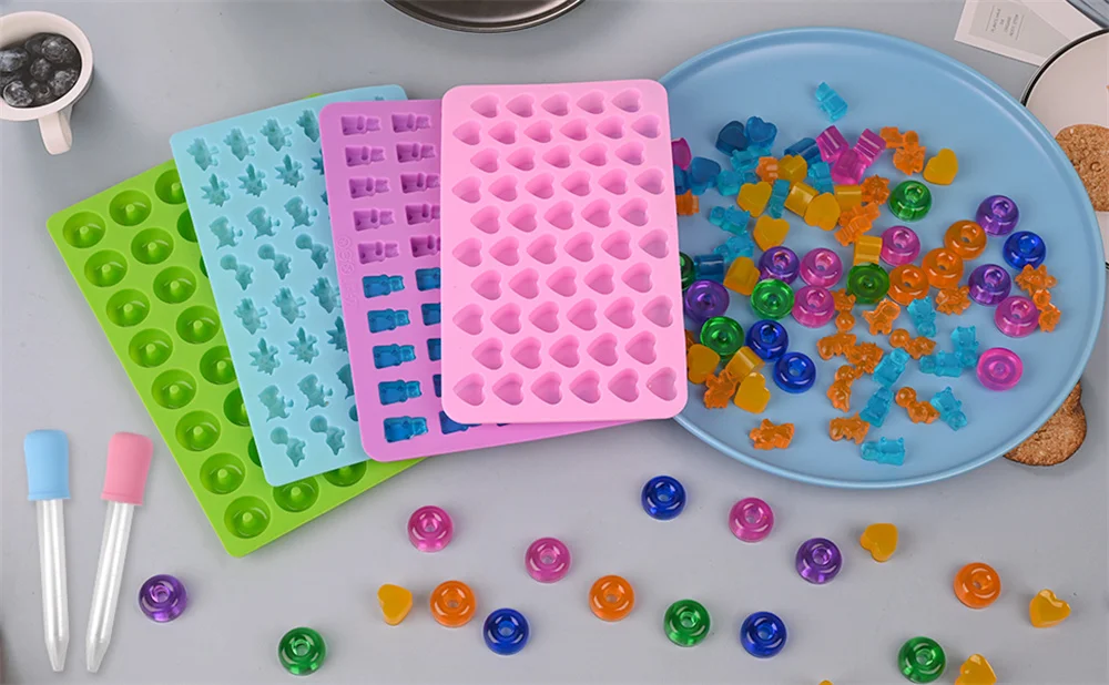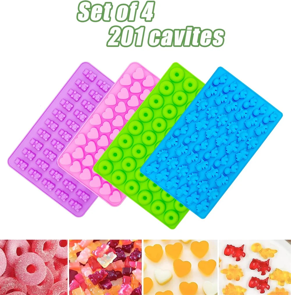 Moules à bonbons en Silicone avec 2 compte-gouttes, ensemble de moules à bonbons gommeux, plateaux à gelée, ensemble de moules de cuisson de bonbons réutilisables, outils de cuisine 4 pièces