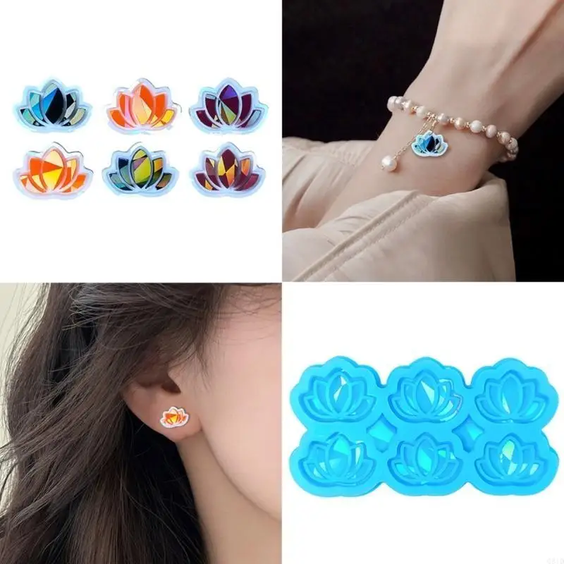 Moules résine holographique Moule silicone à fleurs pour couler époxy Bijoux bricolage