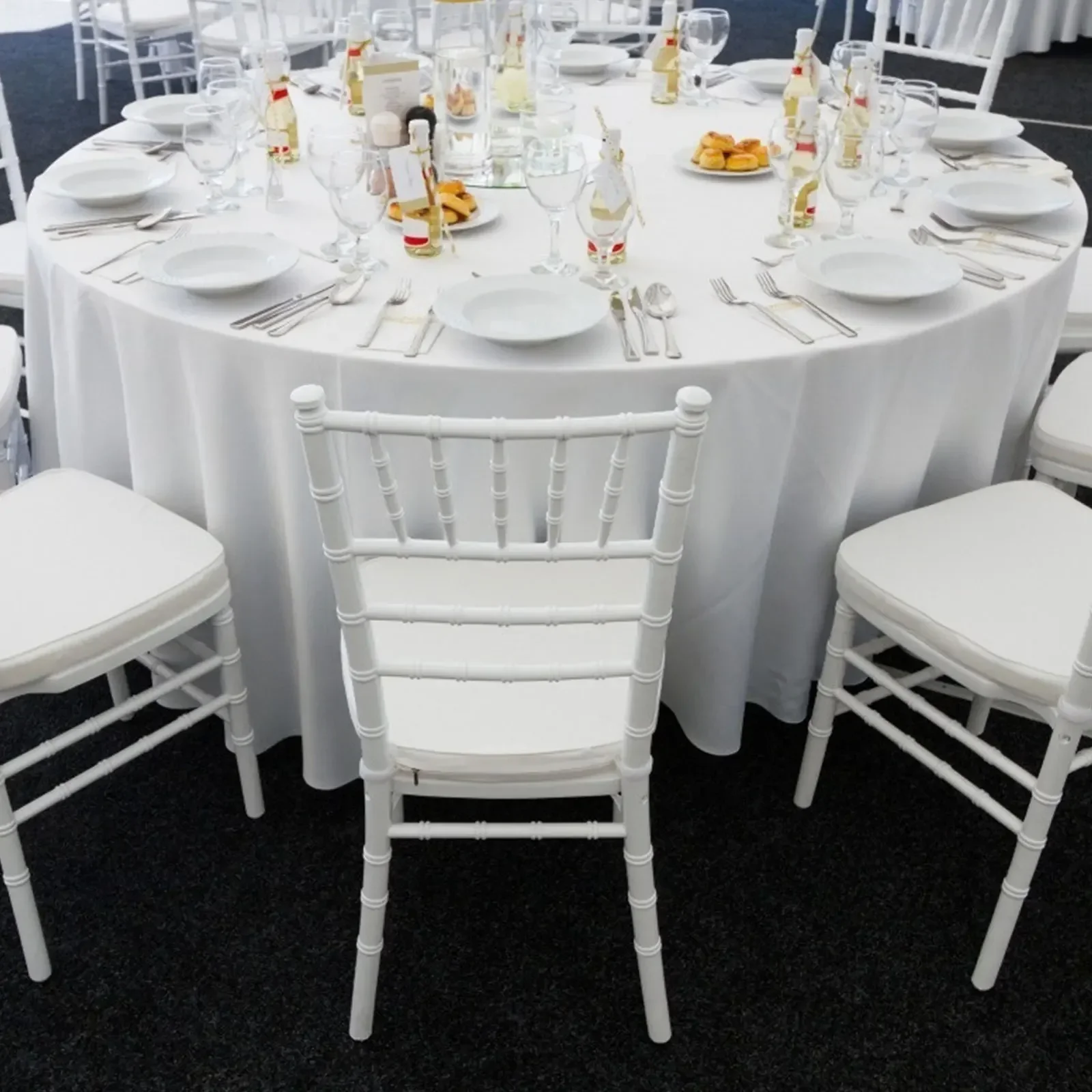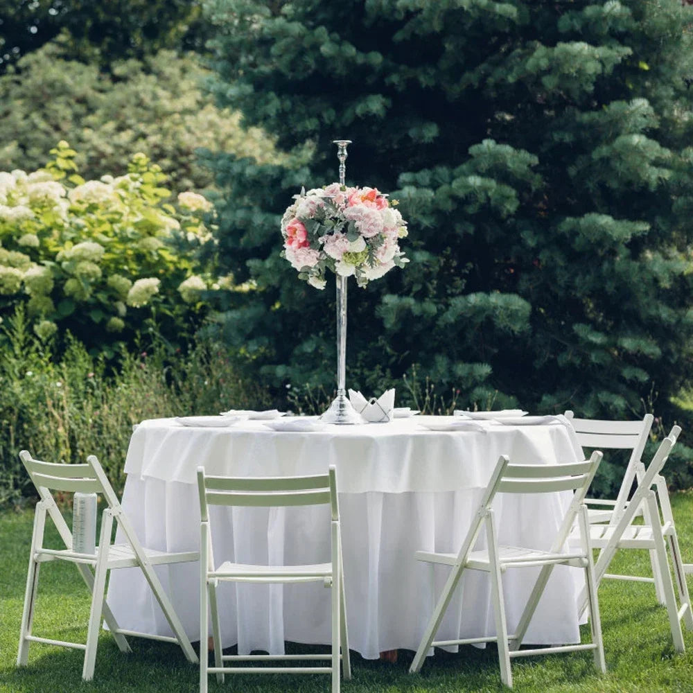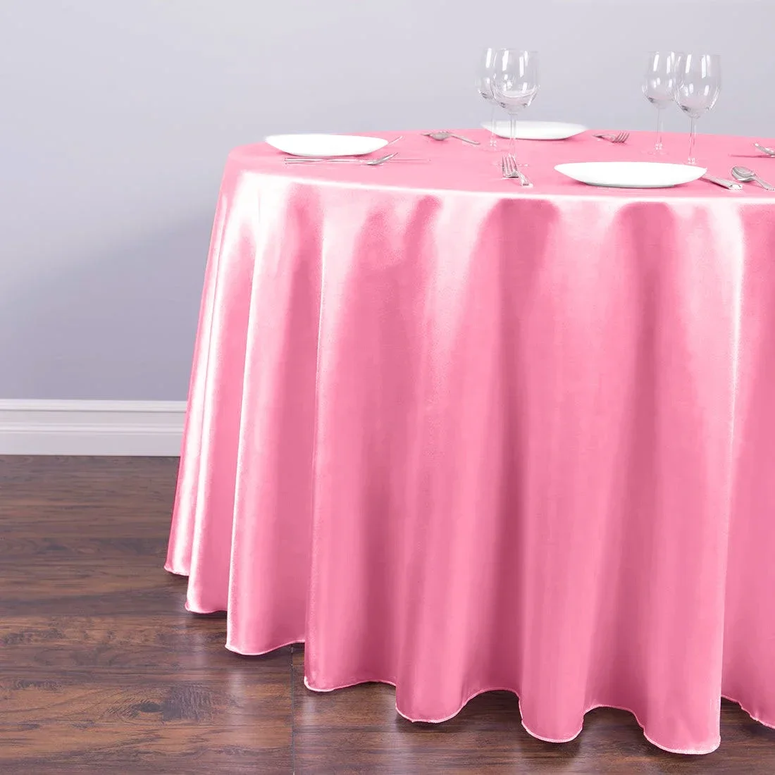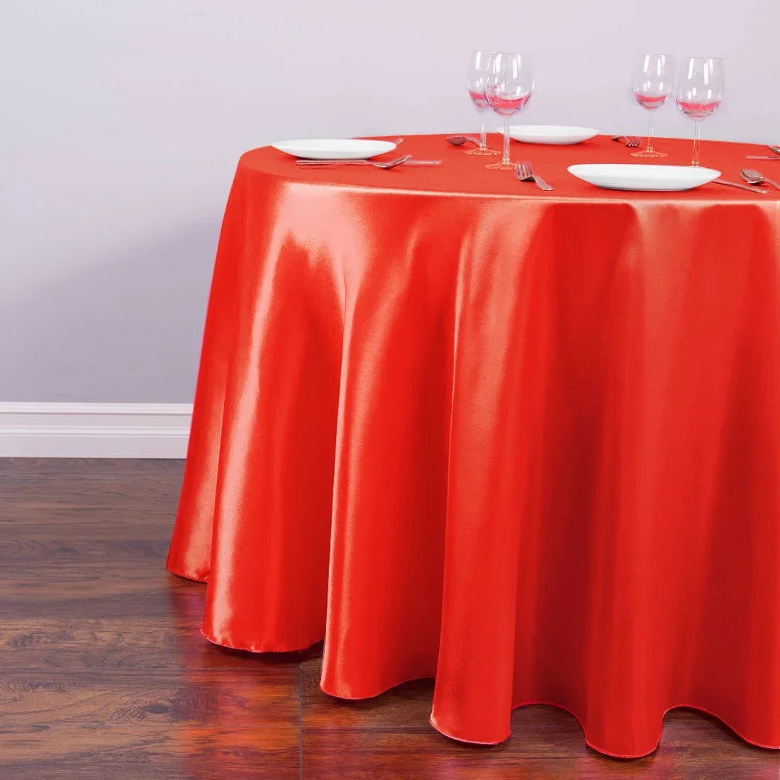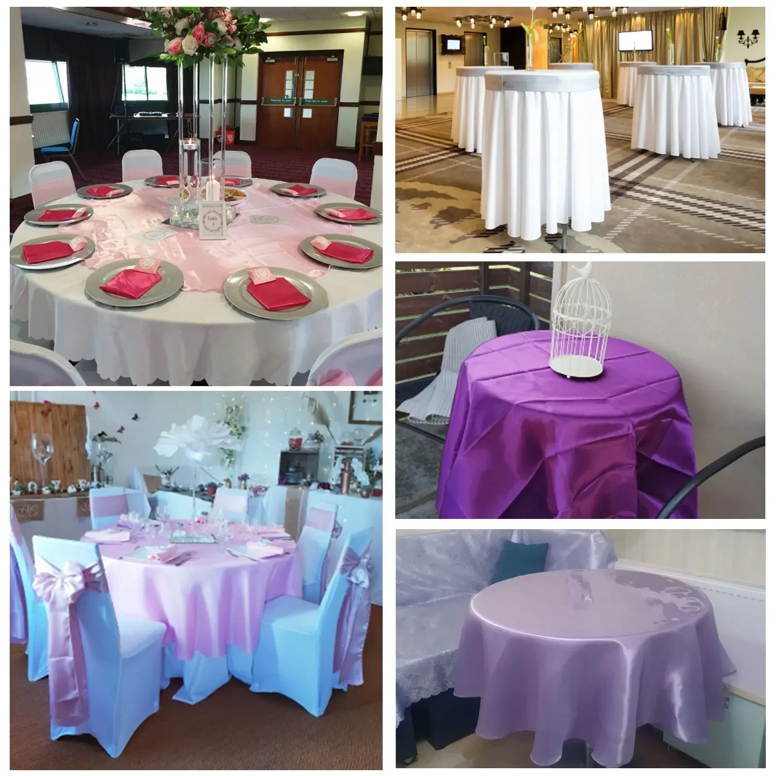 Nappe ronde en satin polyester-coton, lisse et brillante. Imperméable et facile d'entretien au lavage à la main, elle convient parfaitement aux mariages, banquets, hôtels et événements en plein air. Diamètre 120 pouces pour une couverture généreuse de table.