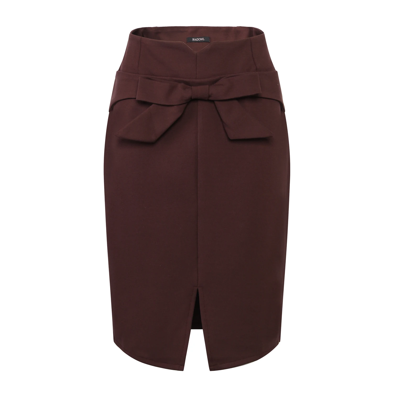 Jupe crayon longueur au genou taille haute élégante fente ouverte nœud jupe taille S-5XL