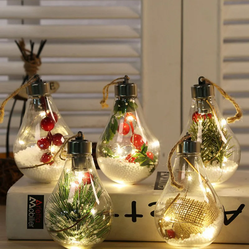 Ornement lumineux de sapin de Noël alliant élégance naturelle et technologie LED. Cette décoration suspendue combine une sphère transparente avec des éléments en pommes de pin et rotin, créant une ambiance chaleureuse et festive. Alimentée par trois piles bouton incluses, elle offre un éclairage doux et économe. Ses dimensions compactes (environ 7×7×11 cm) la rendent idéale pour personnaliser votre intérieur ou créer des compositions décoratives originales. Un accessoire incontournable pour transformer votre espace en véritable univers de fêtes.