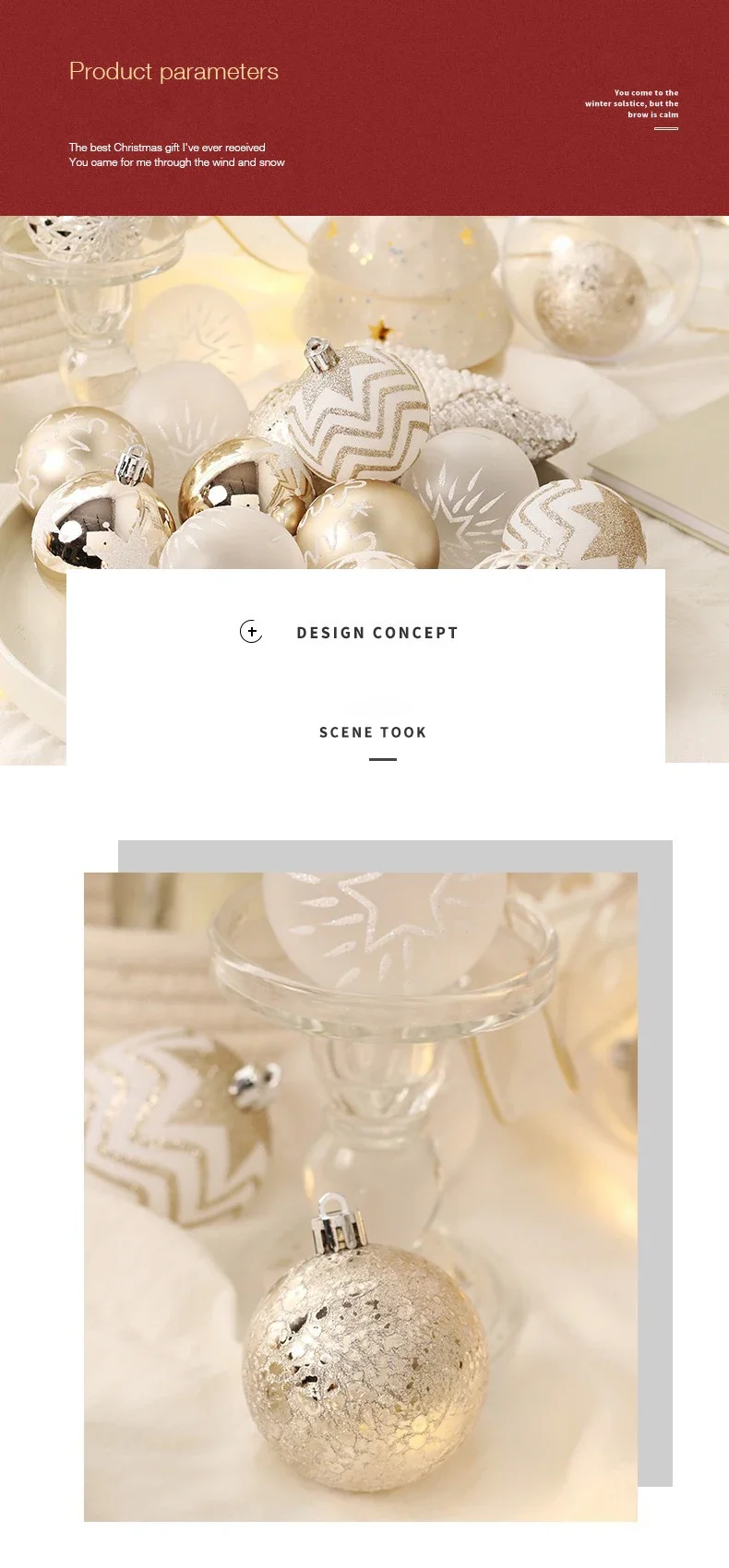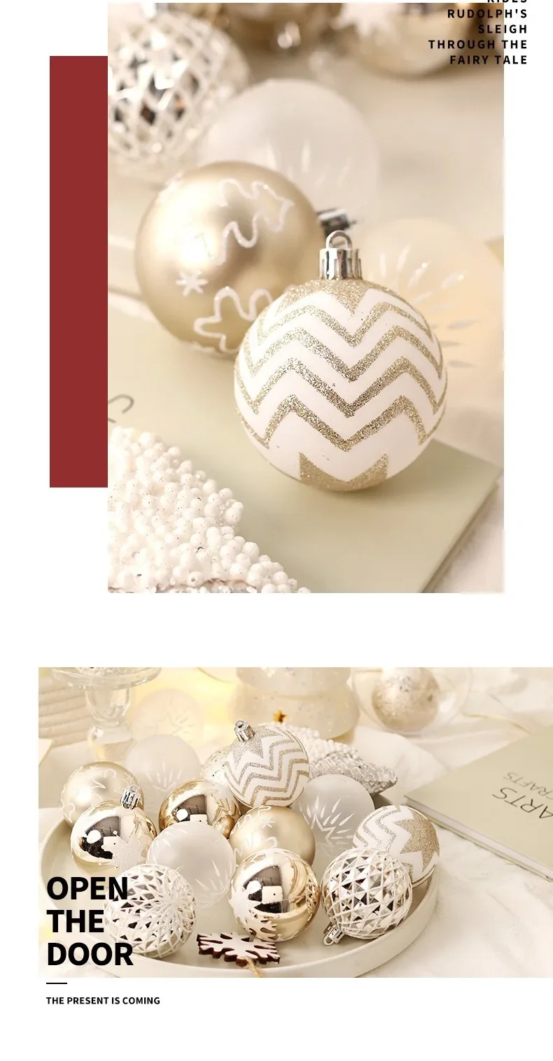 Ornements de boule de Noël, boule de mousse scintillante, pendentif, champagne, or, rouge, 6cm, 16 pièces par boîte